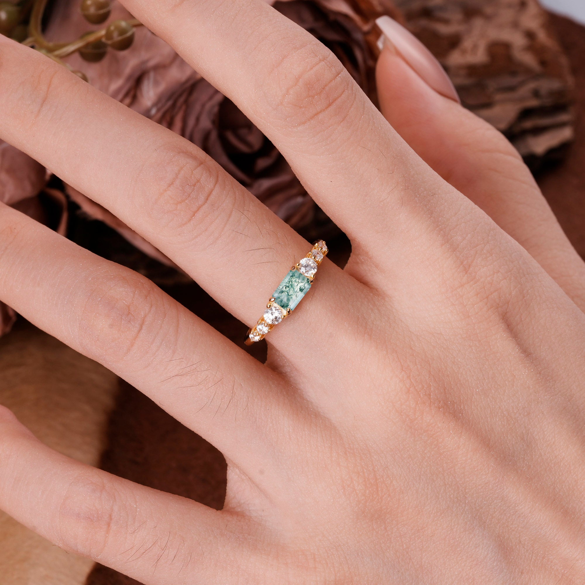 | Stone Material: Moss Agate | Stone Material: Moissanite |