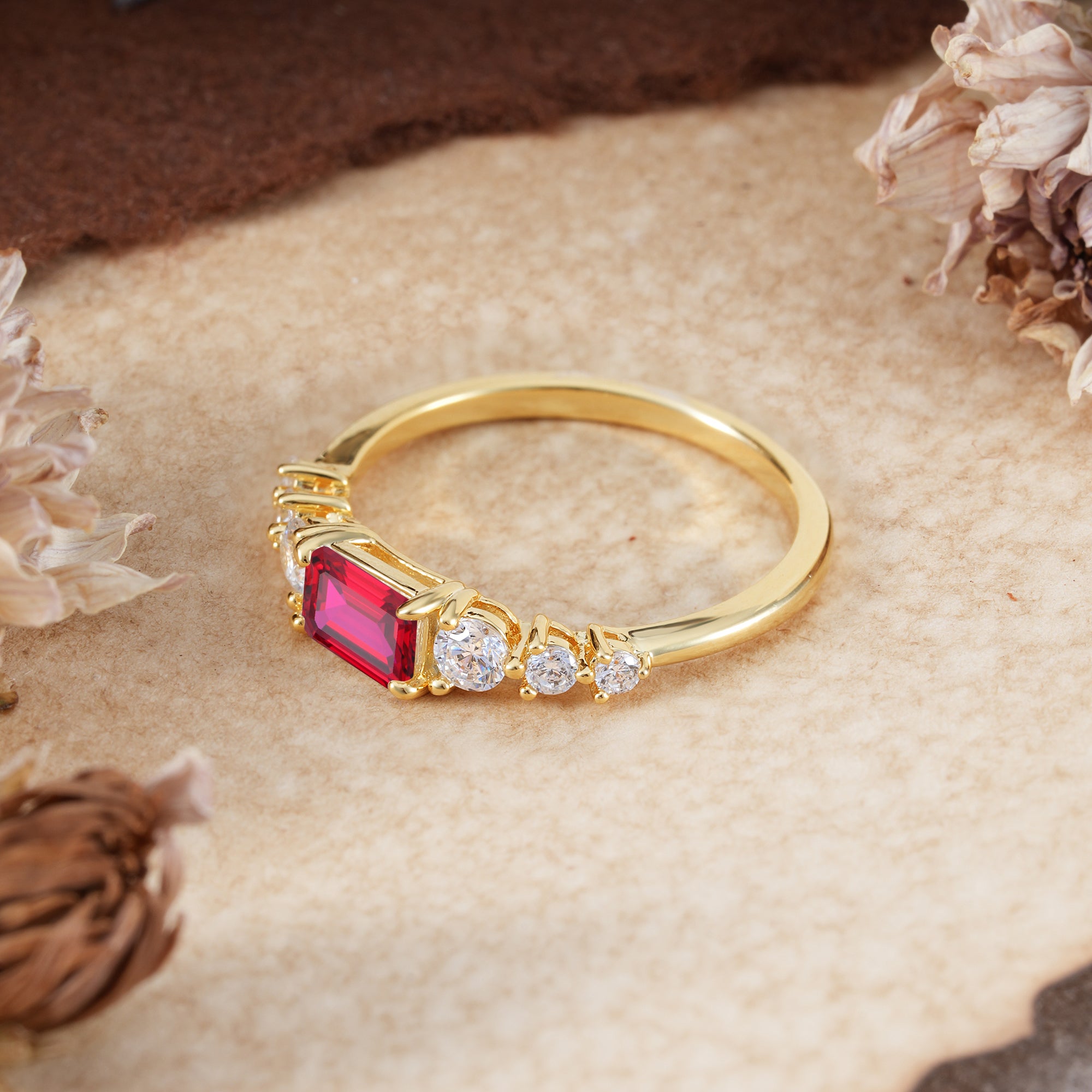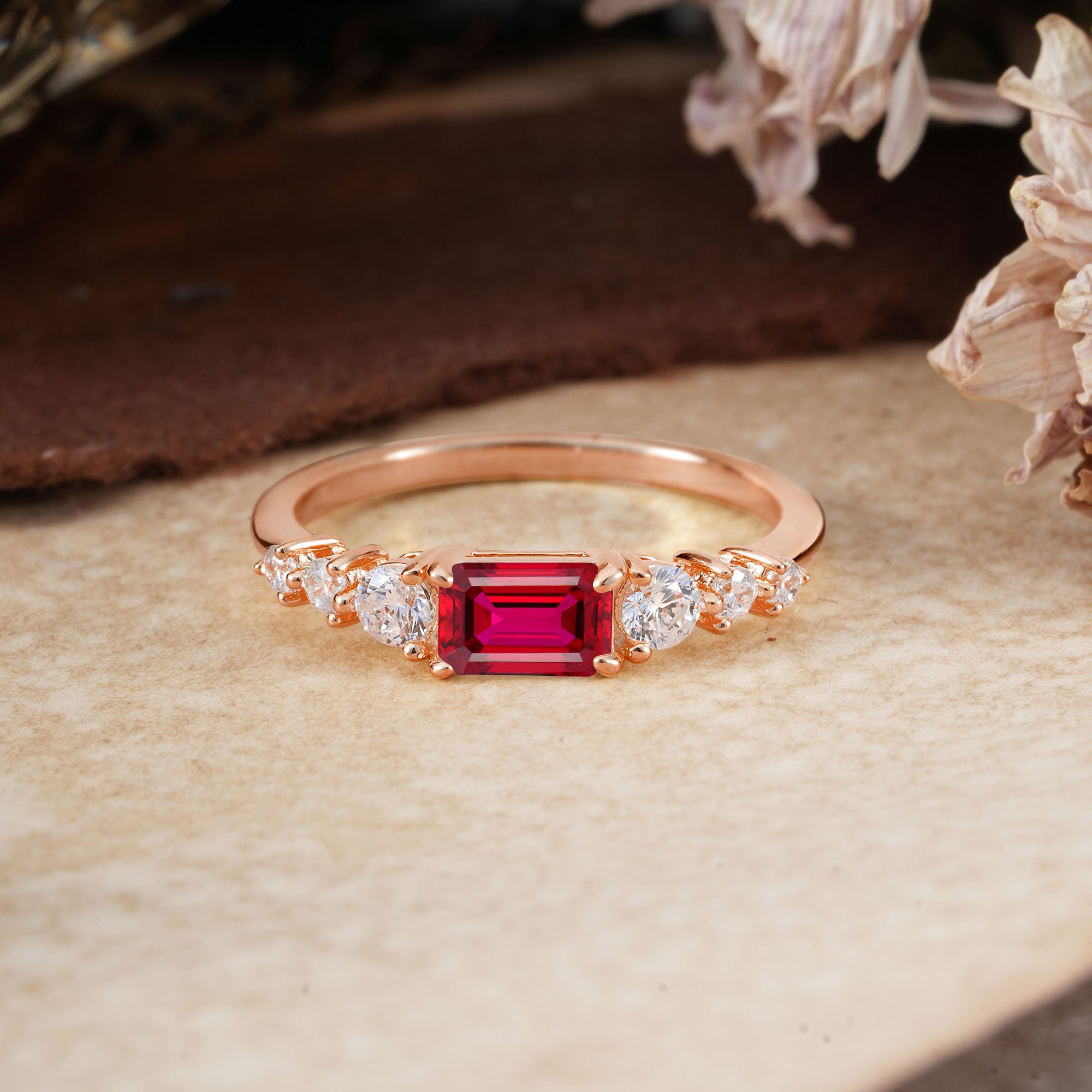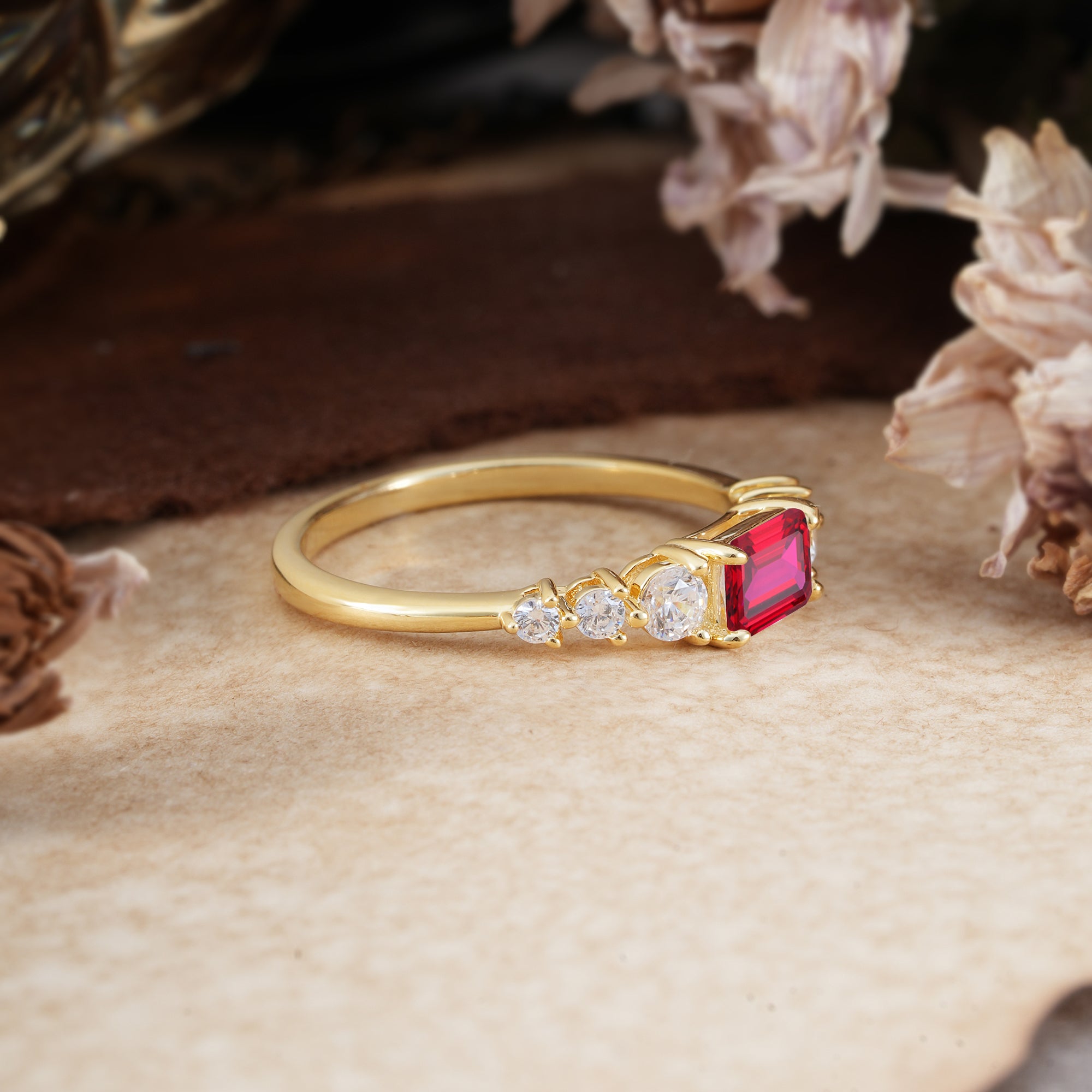 1 Carat Emerald Cut Ruby Engagement Ring Side Stone Promise Ring