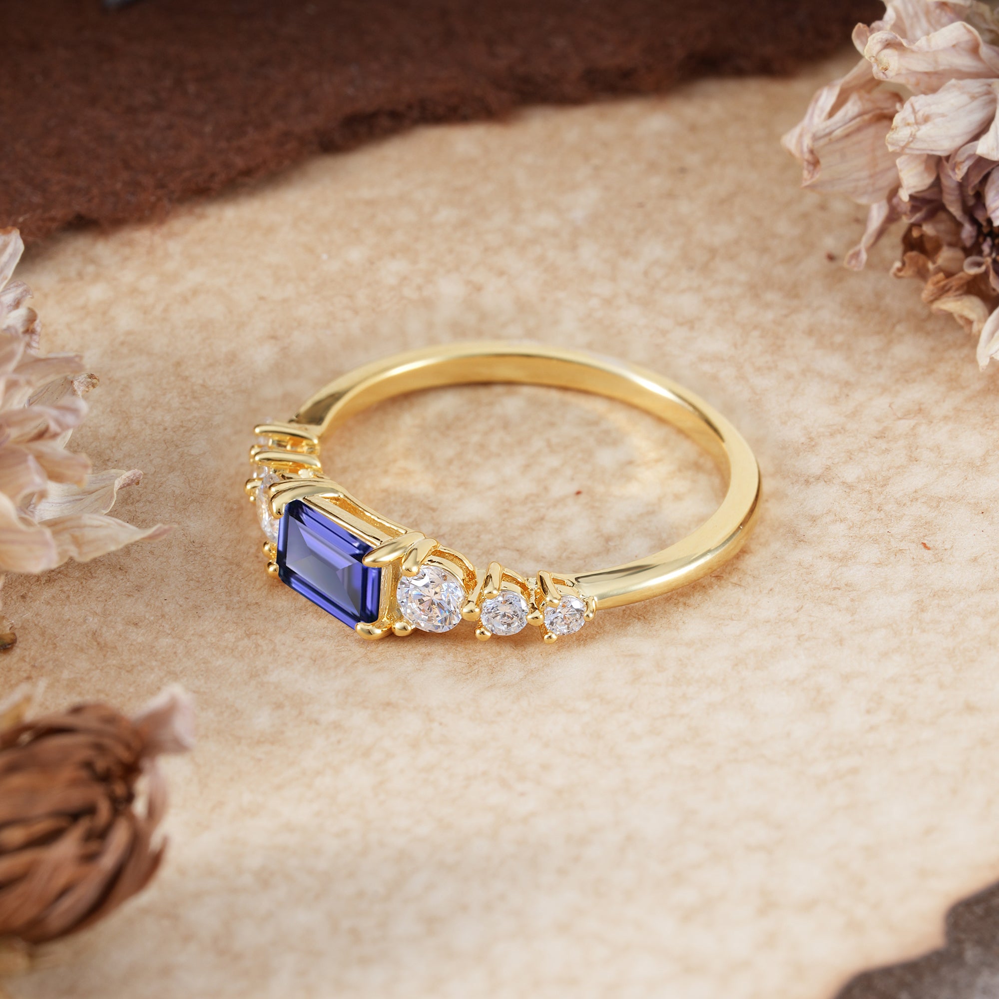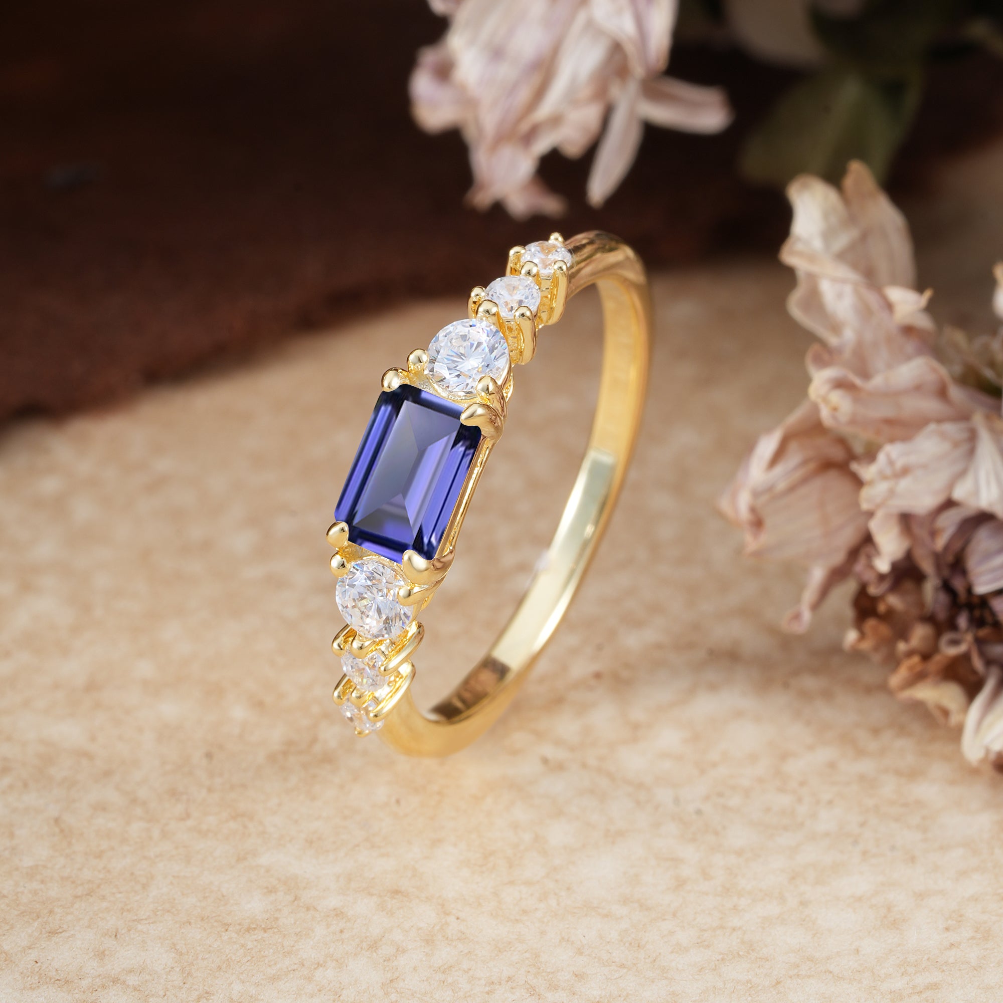 1 Carat Emerald Cut Tanzanite Engagement Ring Side Stone Promise Ring