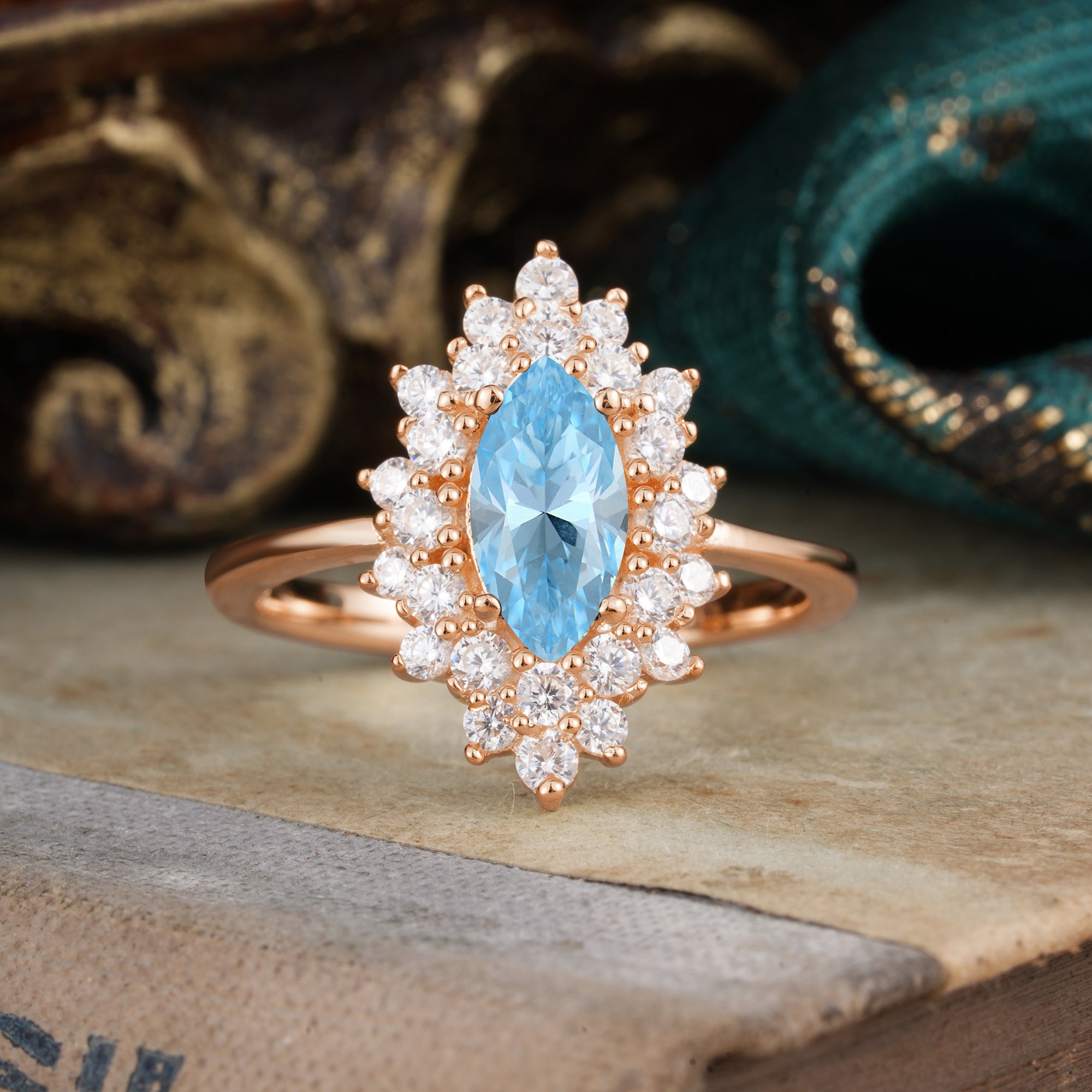 | Stone Material: Aquamarine | Stone Material: Moissanite |