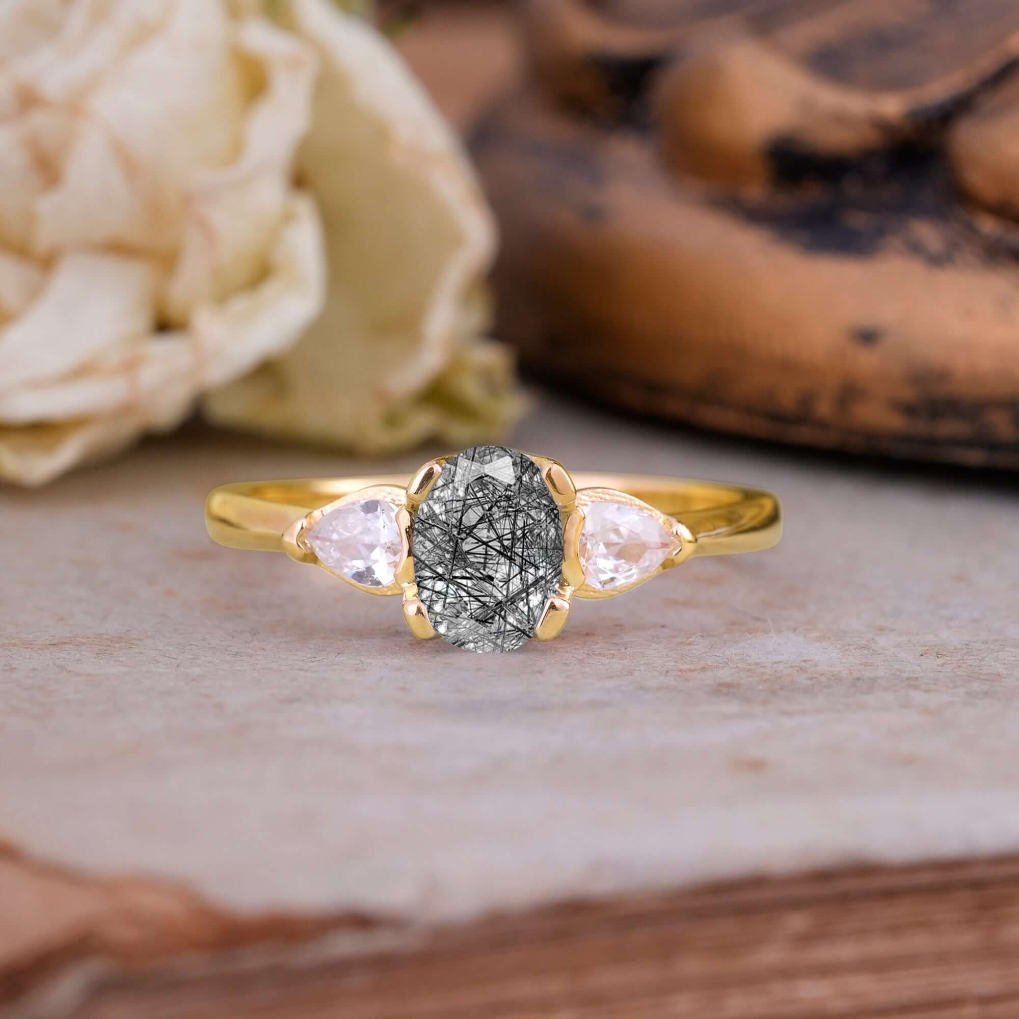 | Stone Material: Black Rutilated Quartz | Stone Material: Moissanite |