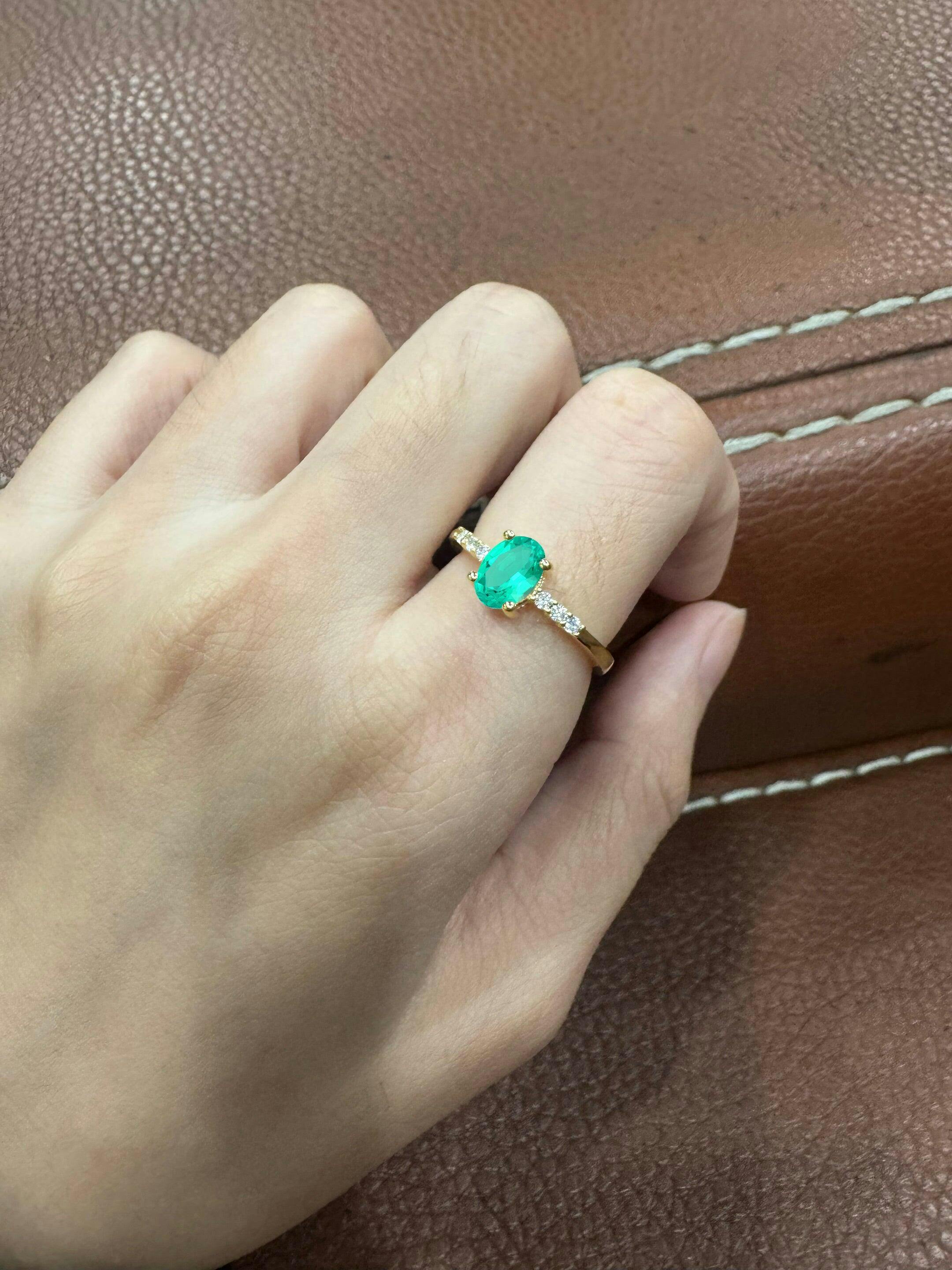 1 Carat Oval Cut 4-Prong Emerald Dainty Engagement Ring