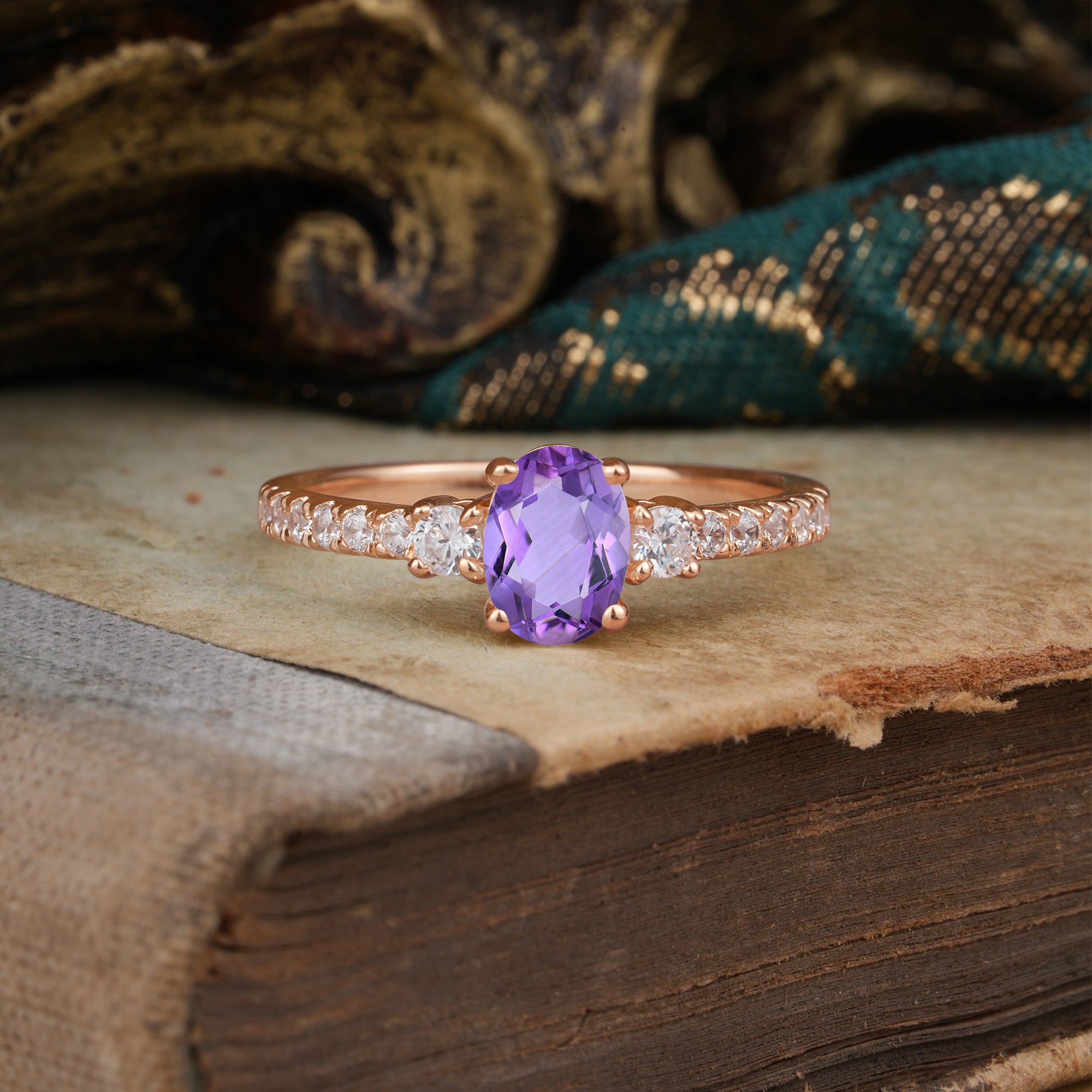 1 Carat Oval Cut 4 Prong Three Stone Amethyst Promise Ring Classic Wedding Ring