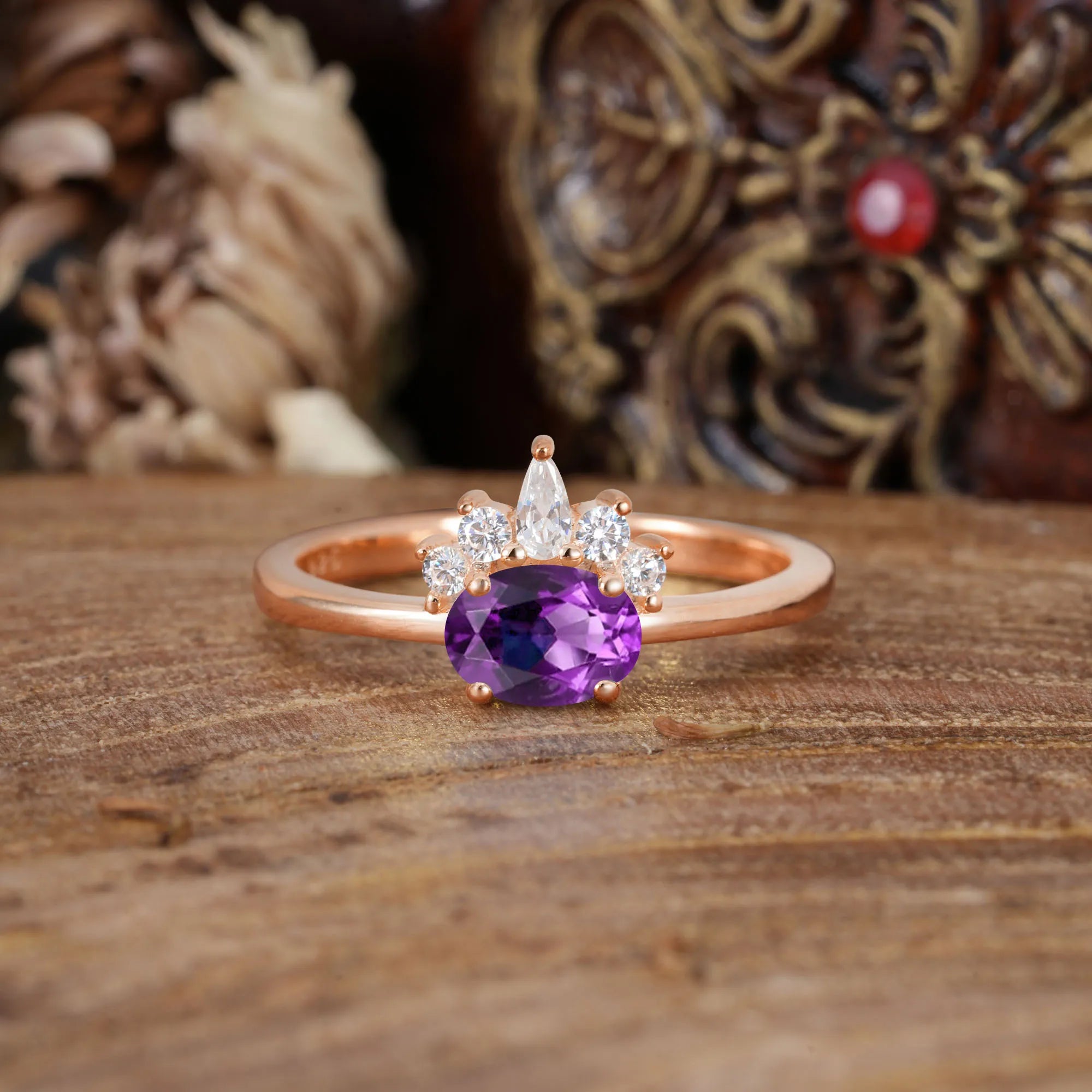 1 Carat Oval Cut Amethyst Anniversary Ring Puppy Paw Unique Ring
