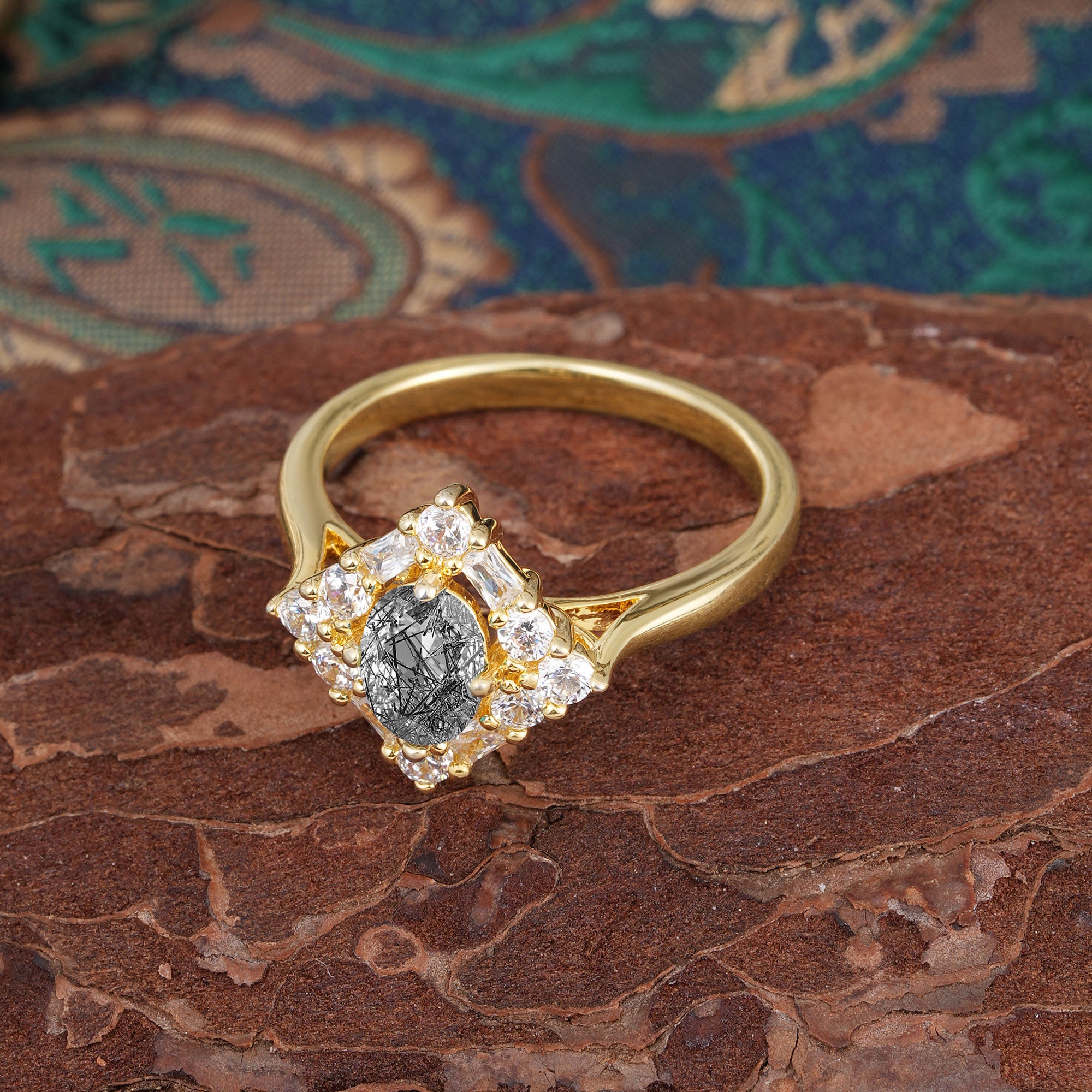| Stone Material: Black Rutilated Quartz | Stone Material: Moissanite |