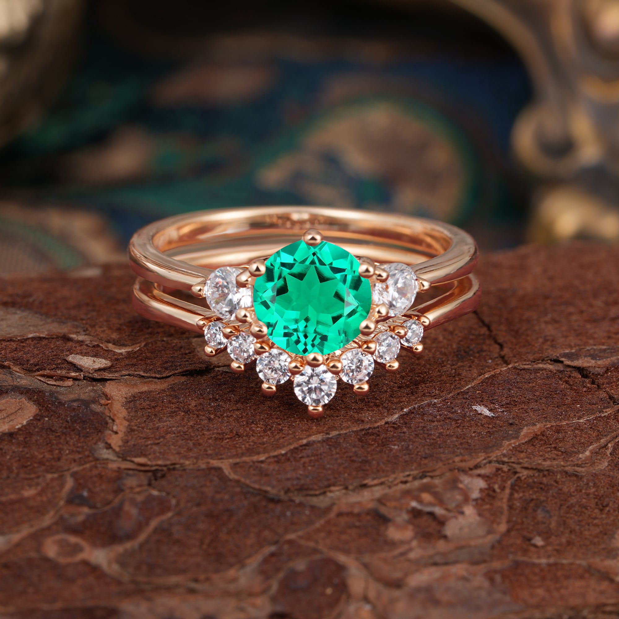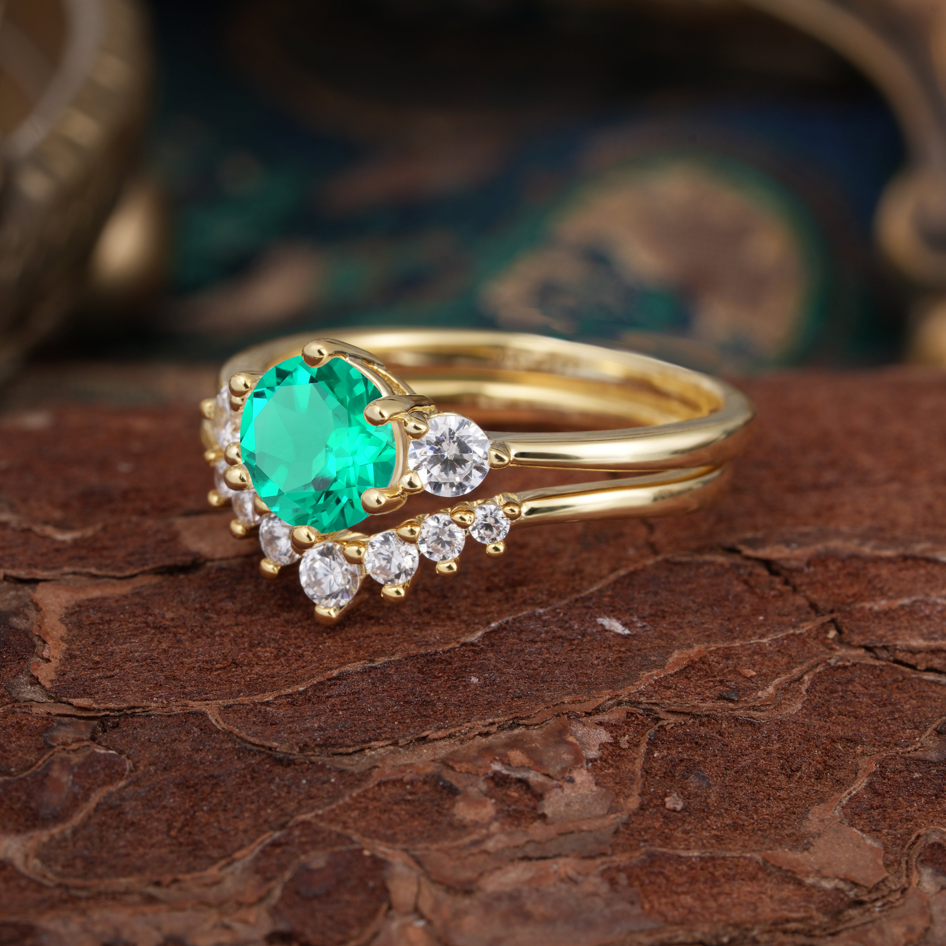 1 Carat Round Cut Emerald Engagement Ring Set Classic Wedding Ring