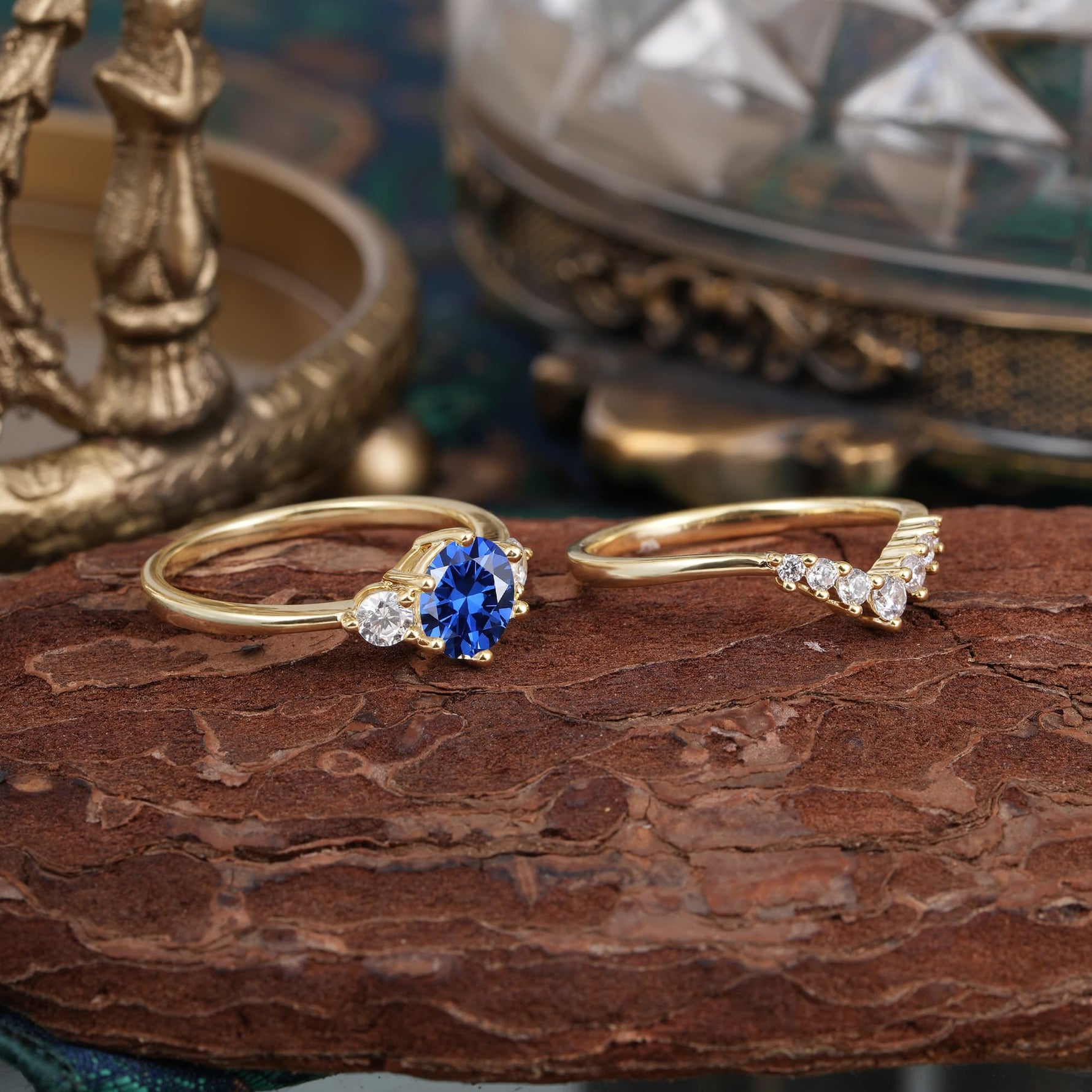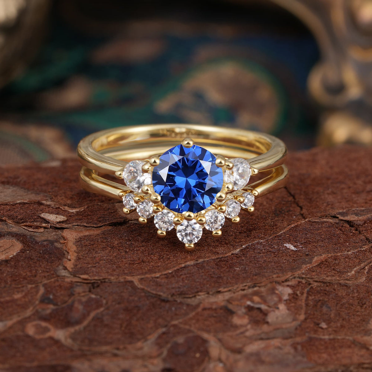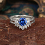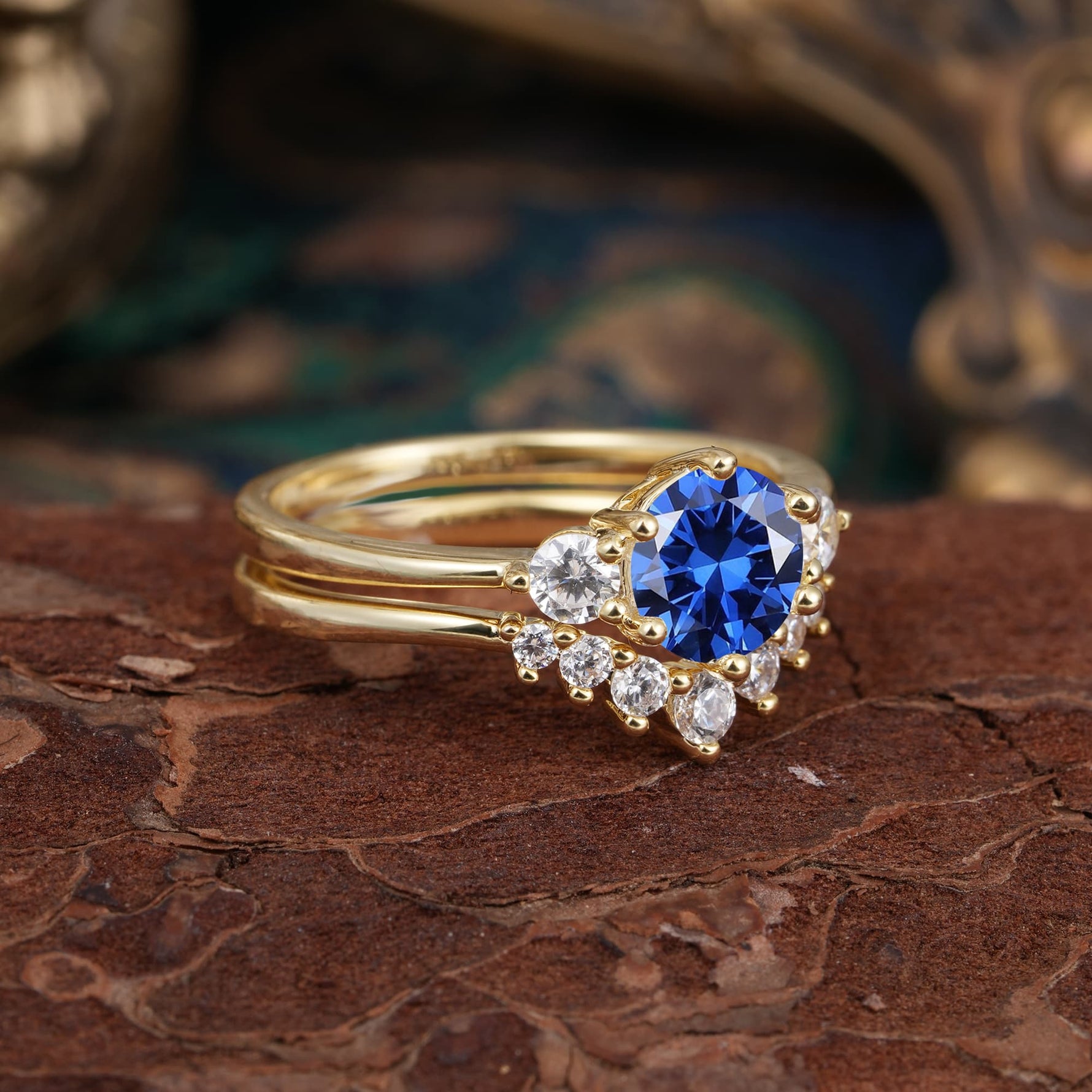 1 Carat Side Stone Round Cut Sapphire Bridal Ring Set