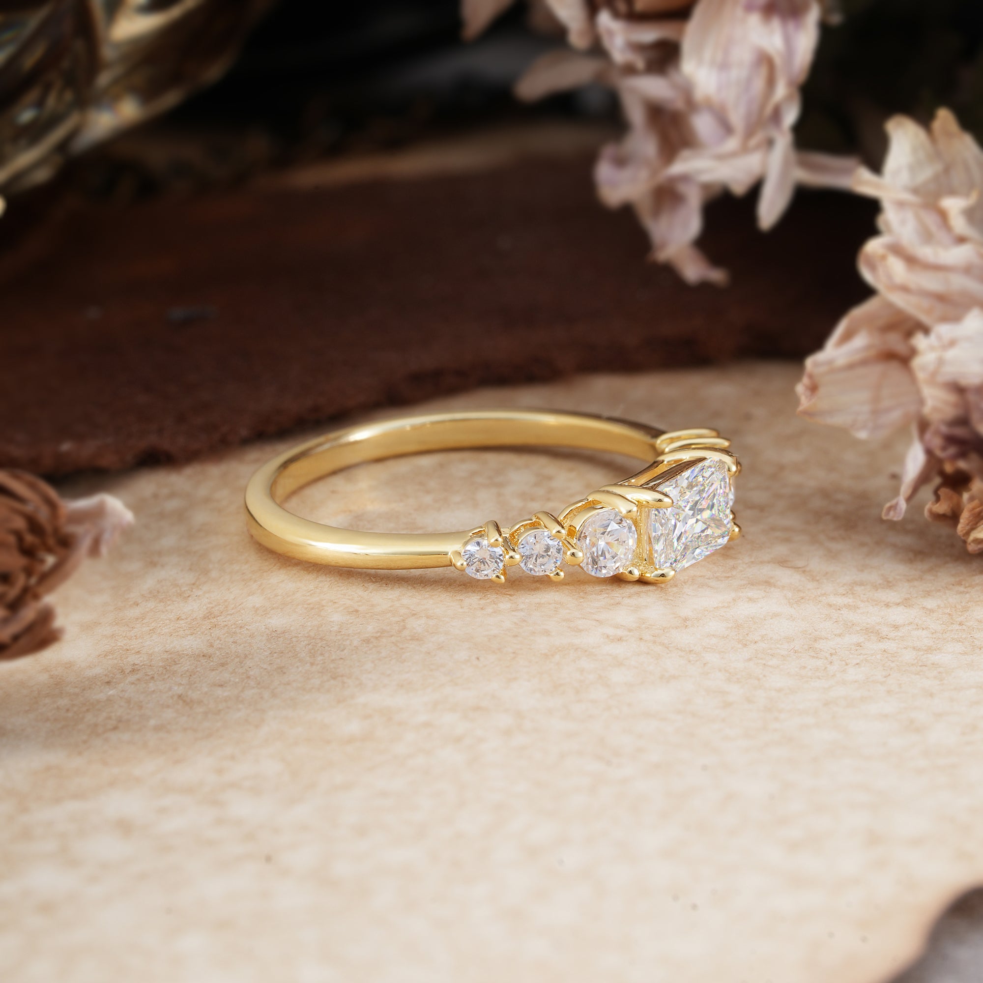 1 Carat Emerald Cut Moissanite Engagement Ring Side Stone Promise Ring
