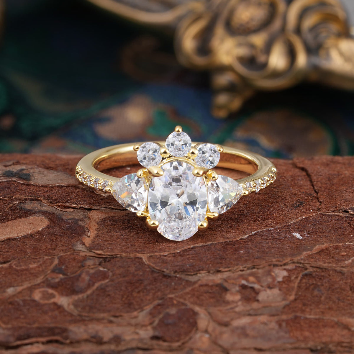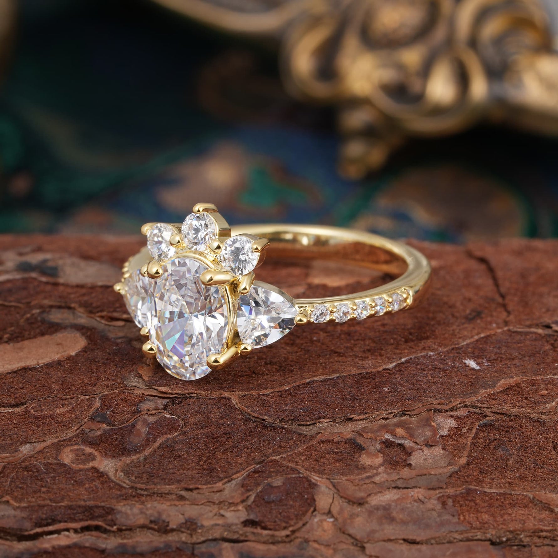 2 Carat Cluster White Moissanite Unique Oval Shaped Engagement Ring
