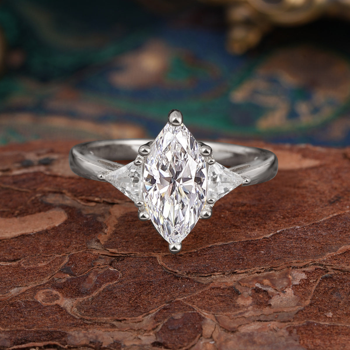 ✨ Marquise Cut Three Stone Moissanite Engagement Ring ✨