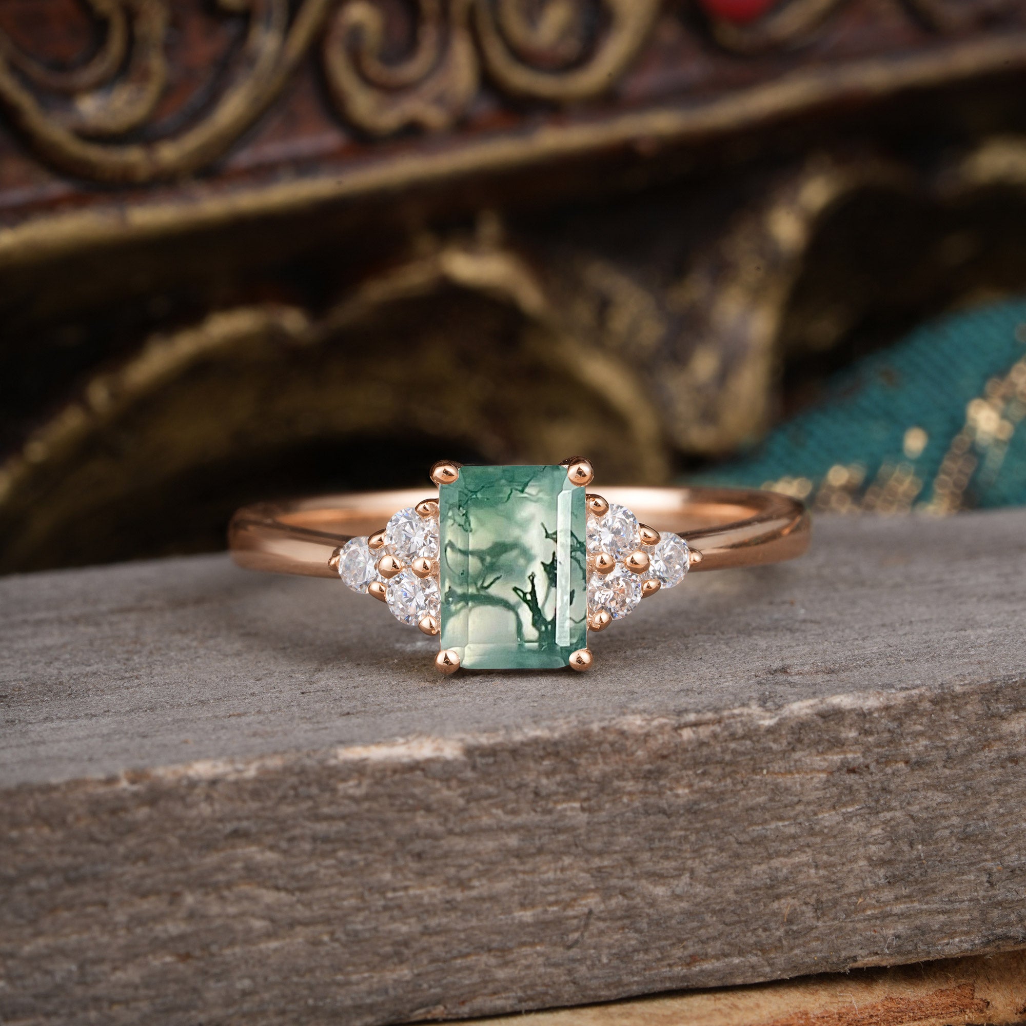 | Stone Material: Moss Agate | Stone Material: Moissanite |