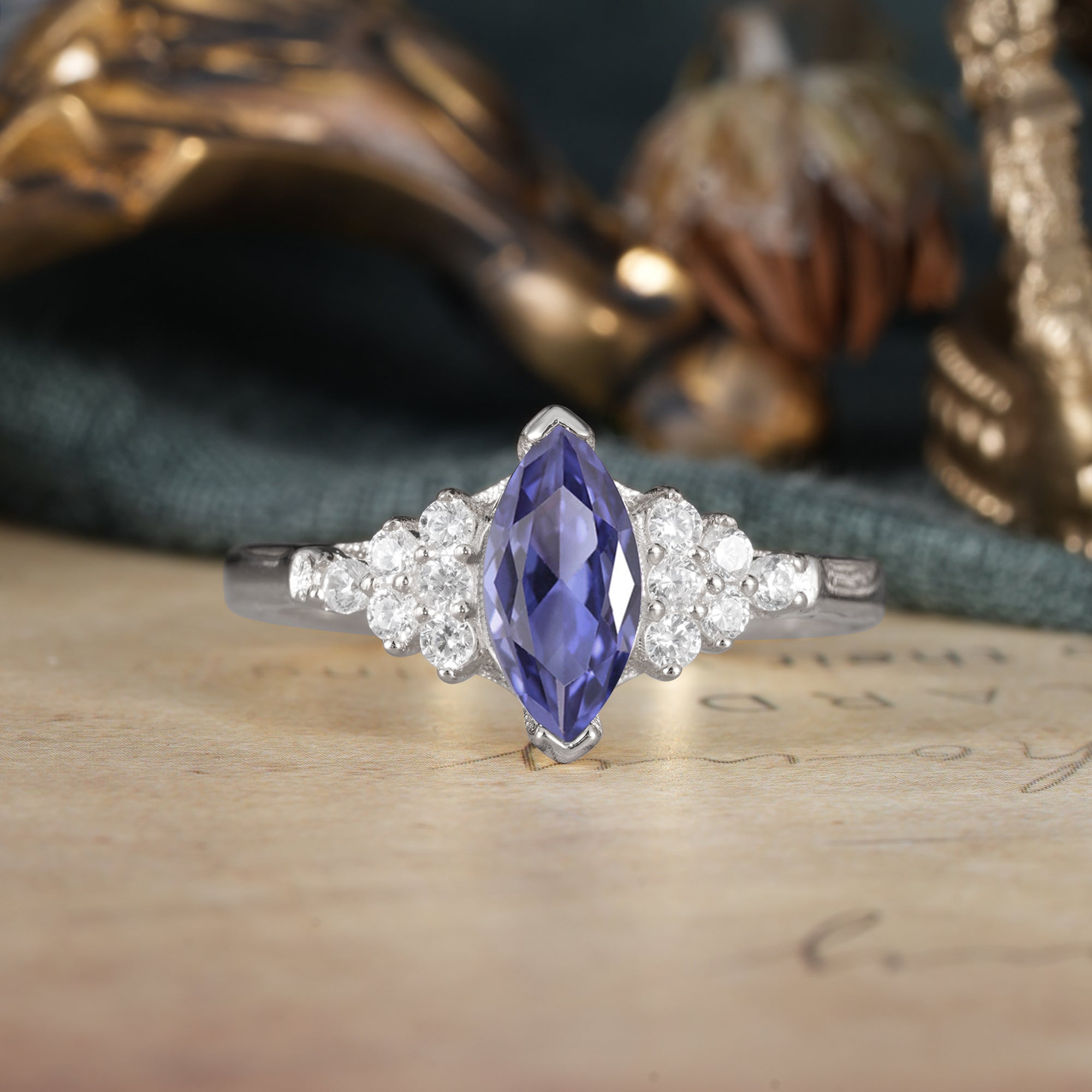 1CT Marquise Cut 2 Prong Tanzanite Cluster Engagement Anniversary Ring