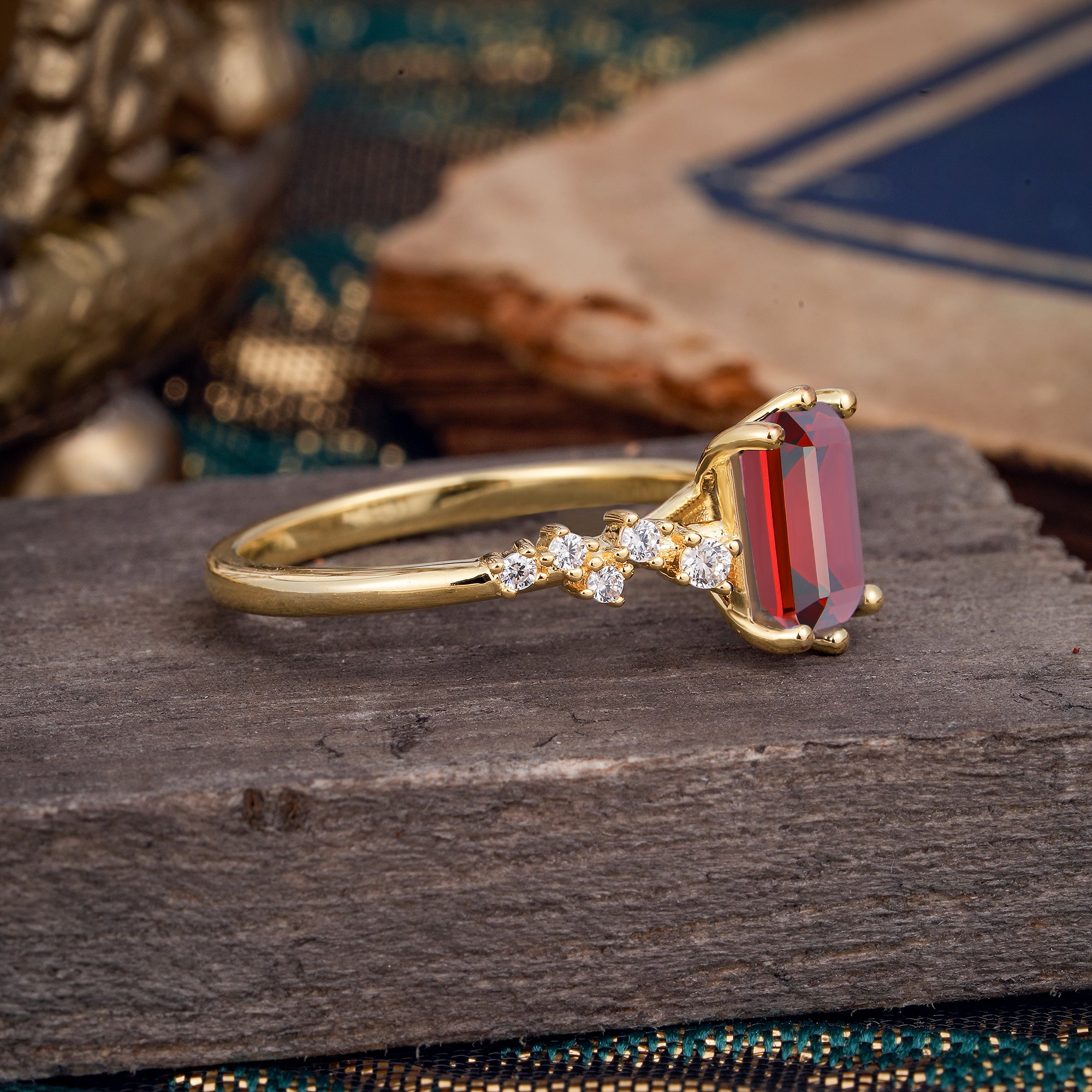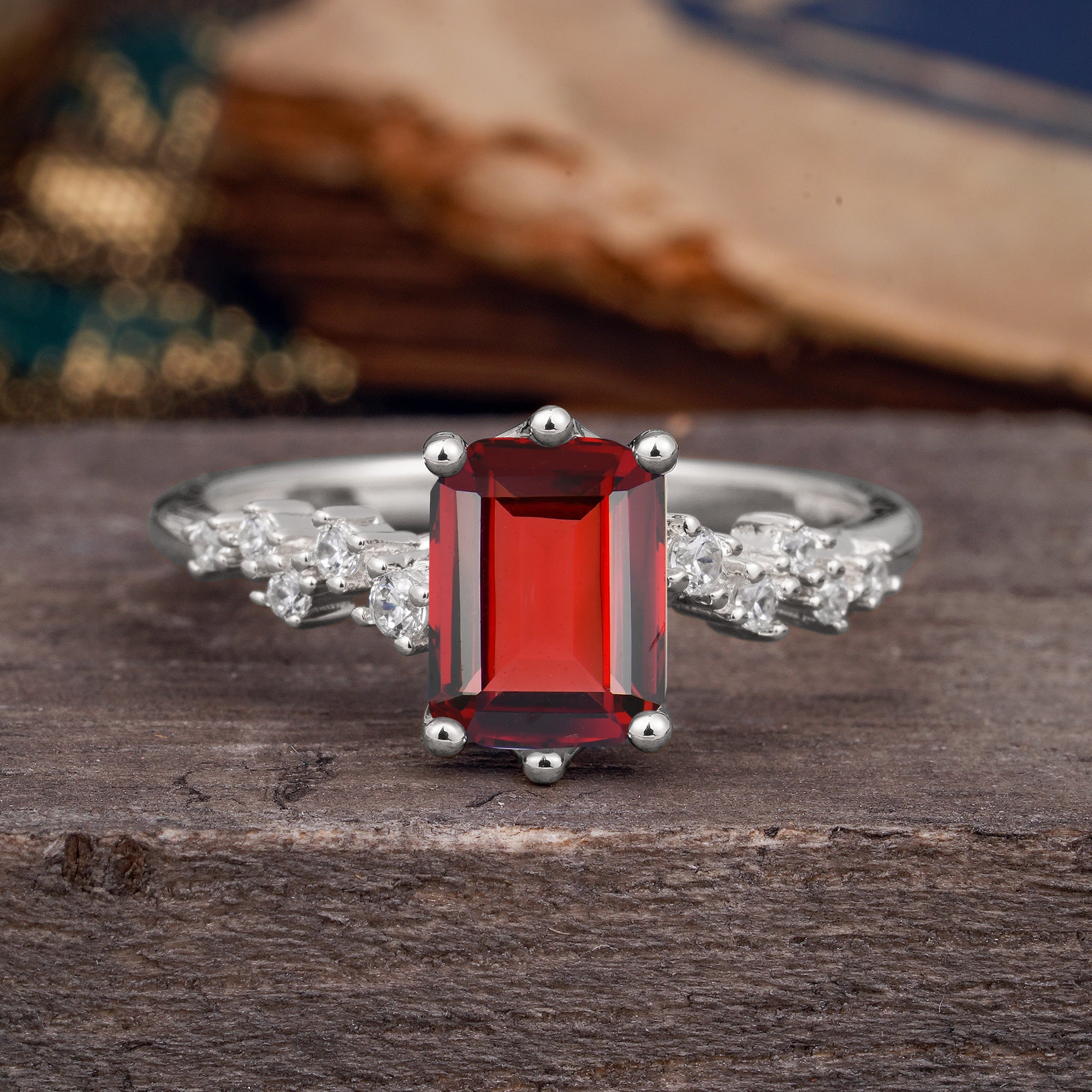 2 Carat Emerald Cut Garnet Wedding Ring Classic Side Stone Promise Ring