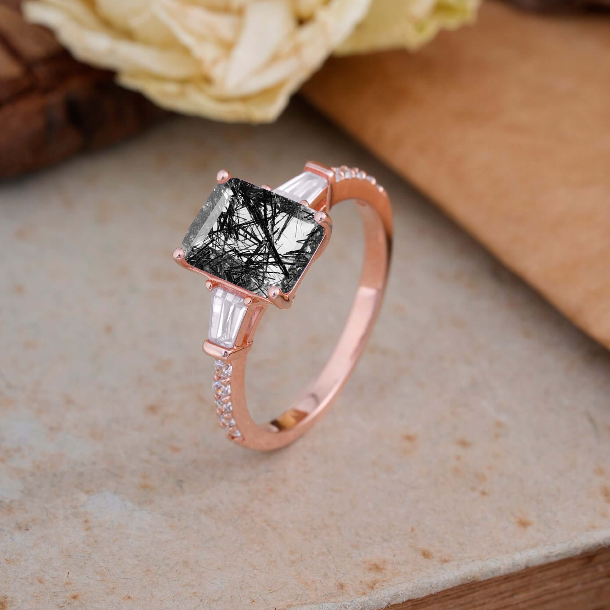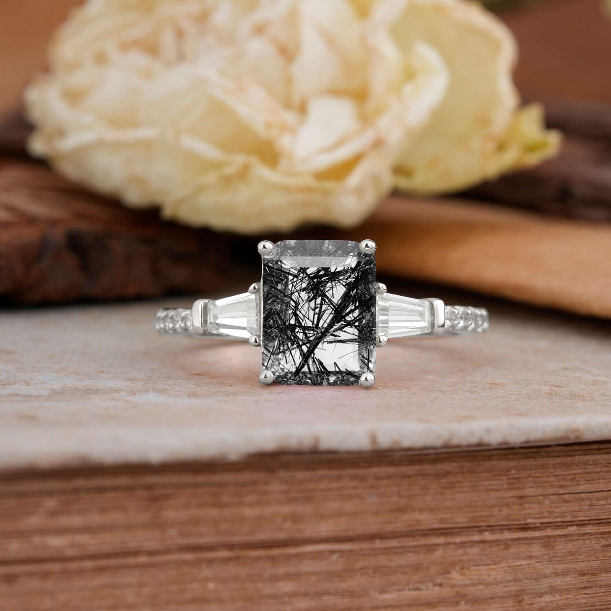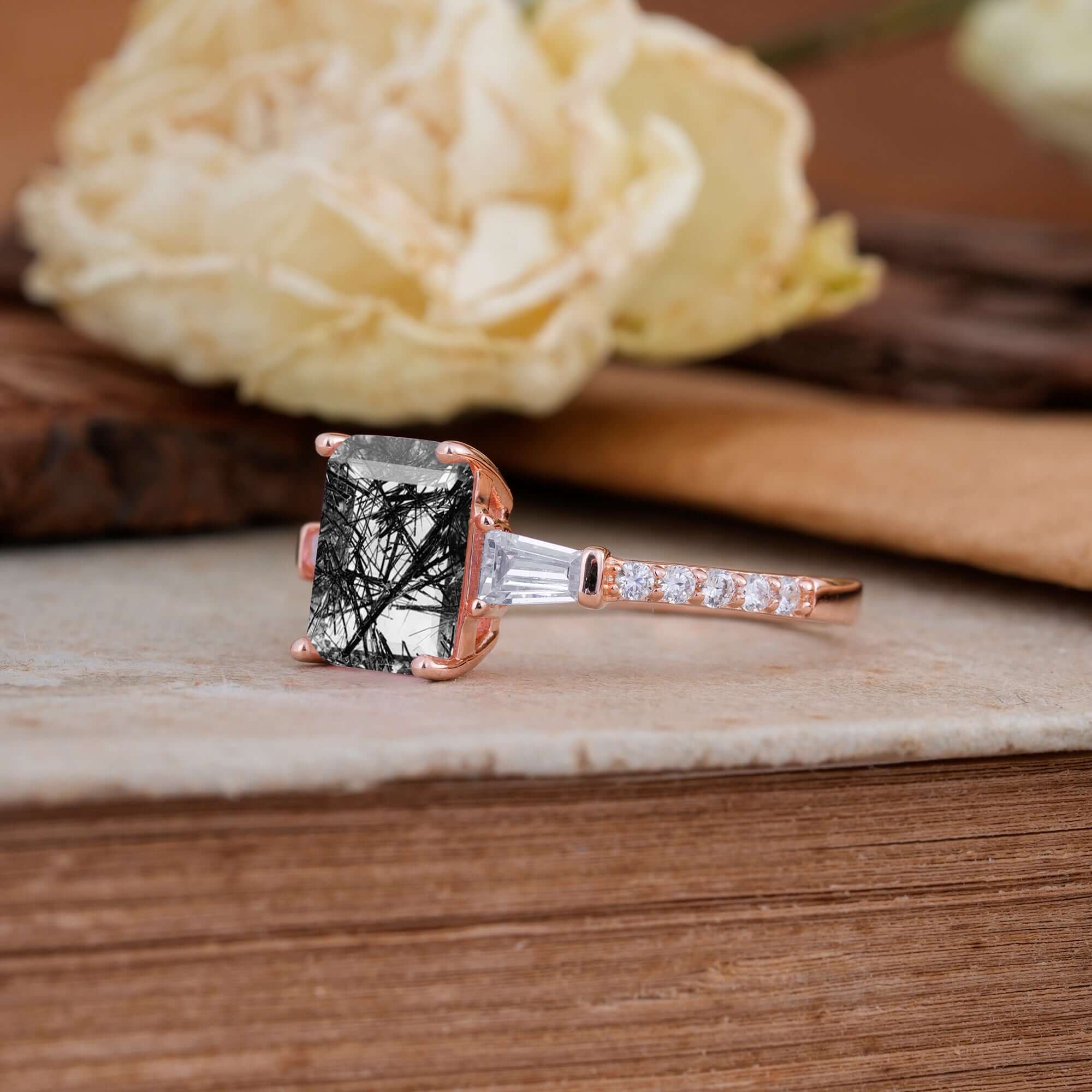 | Stone Material: Black Rutilated Quartz | Stone Material: Moissanite |