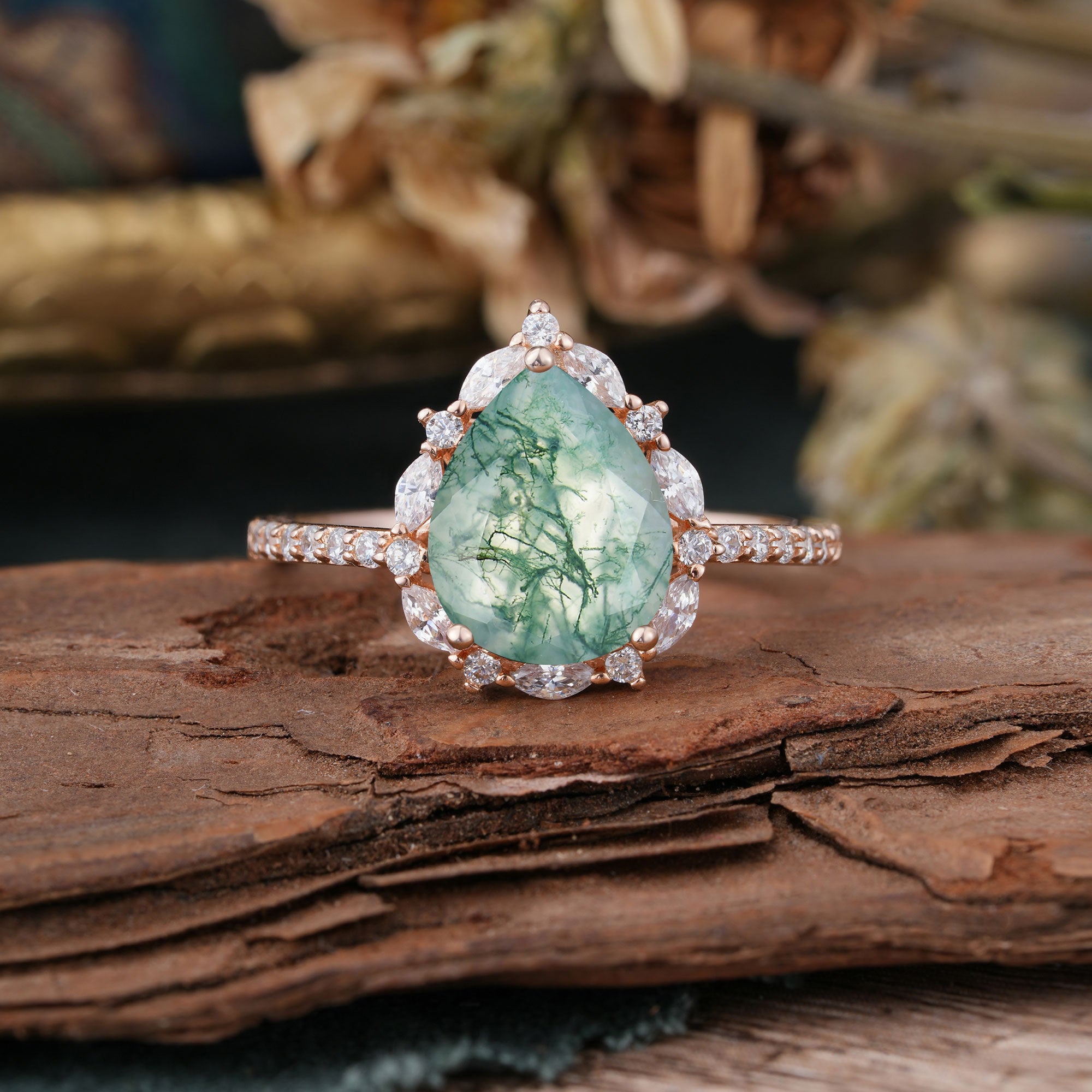 Stone Material: Moss Agate | Stone Material: Moissanite |