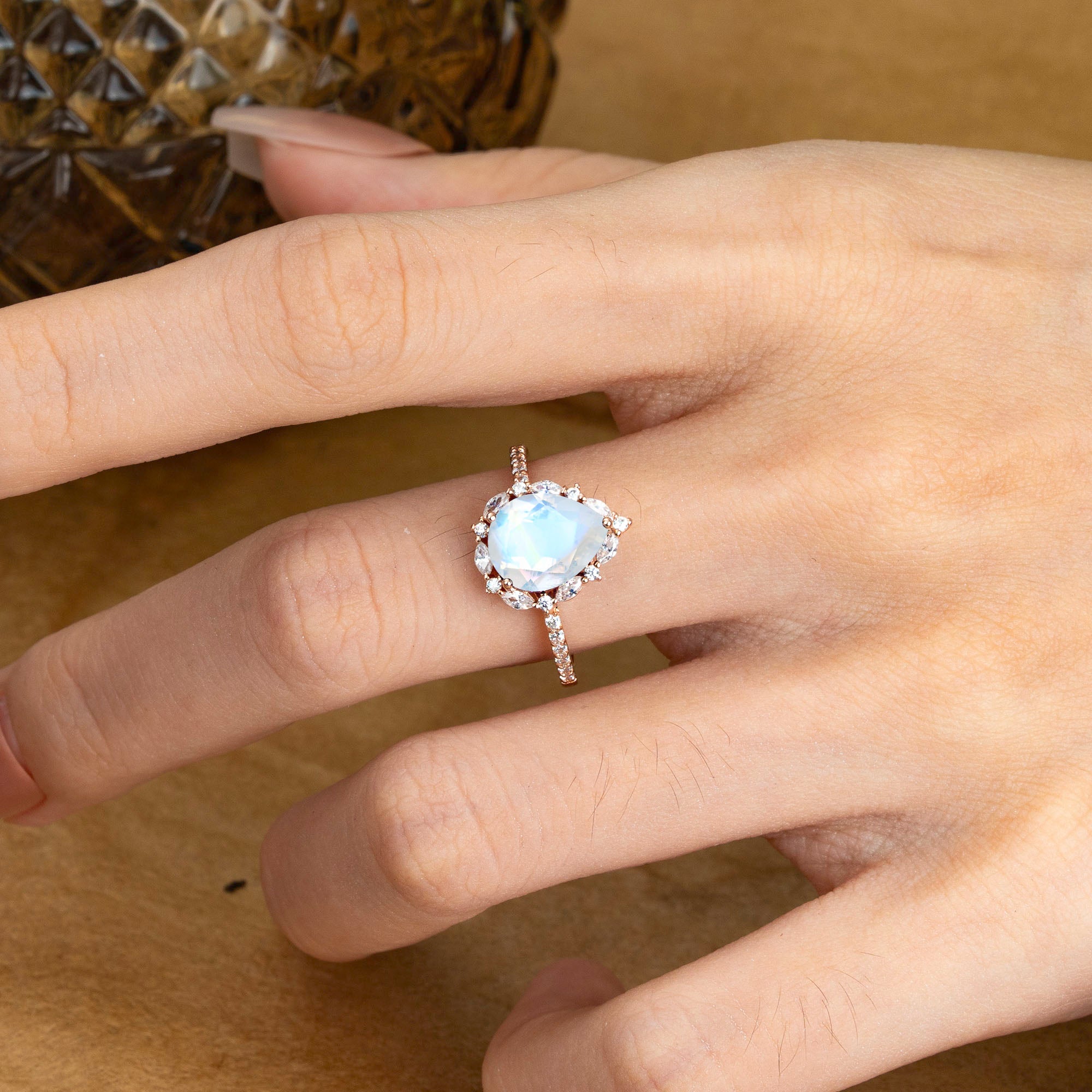| Stone Material: Moonstone | Stone Material: Moissanite |
