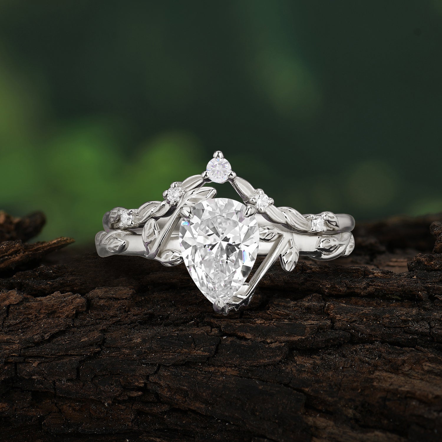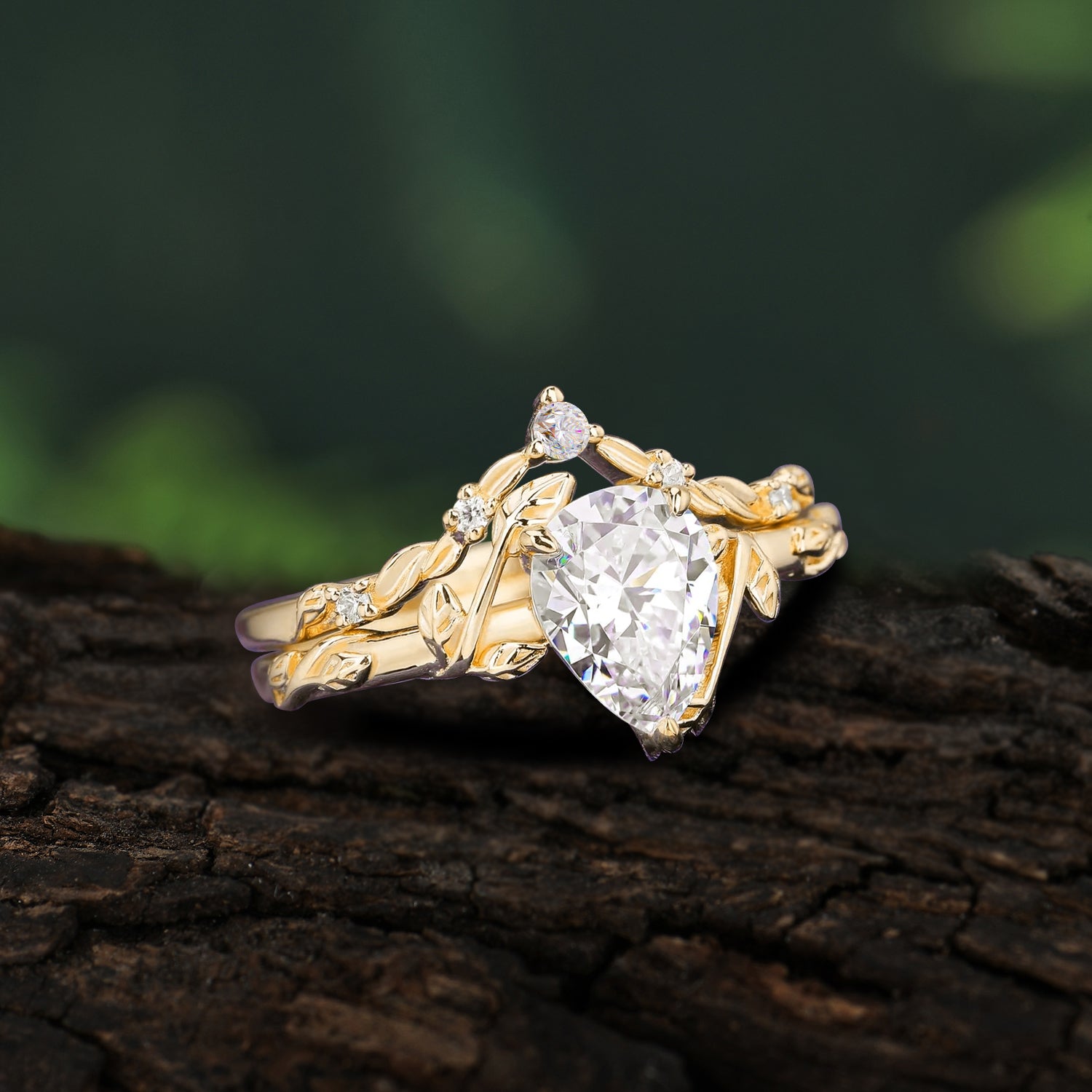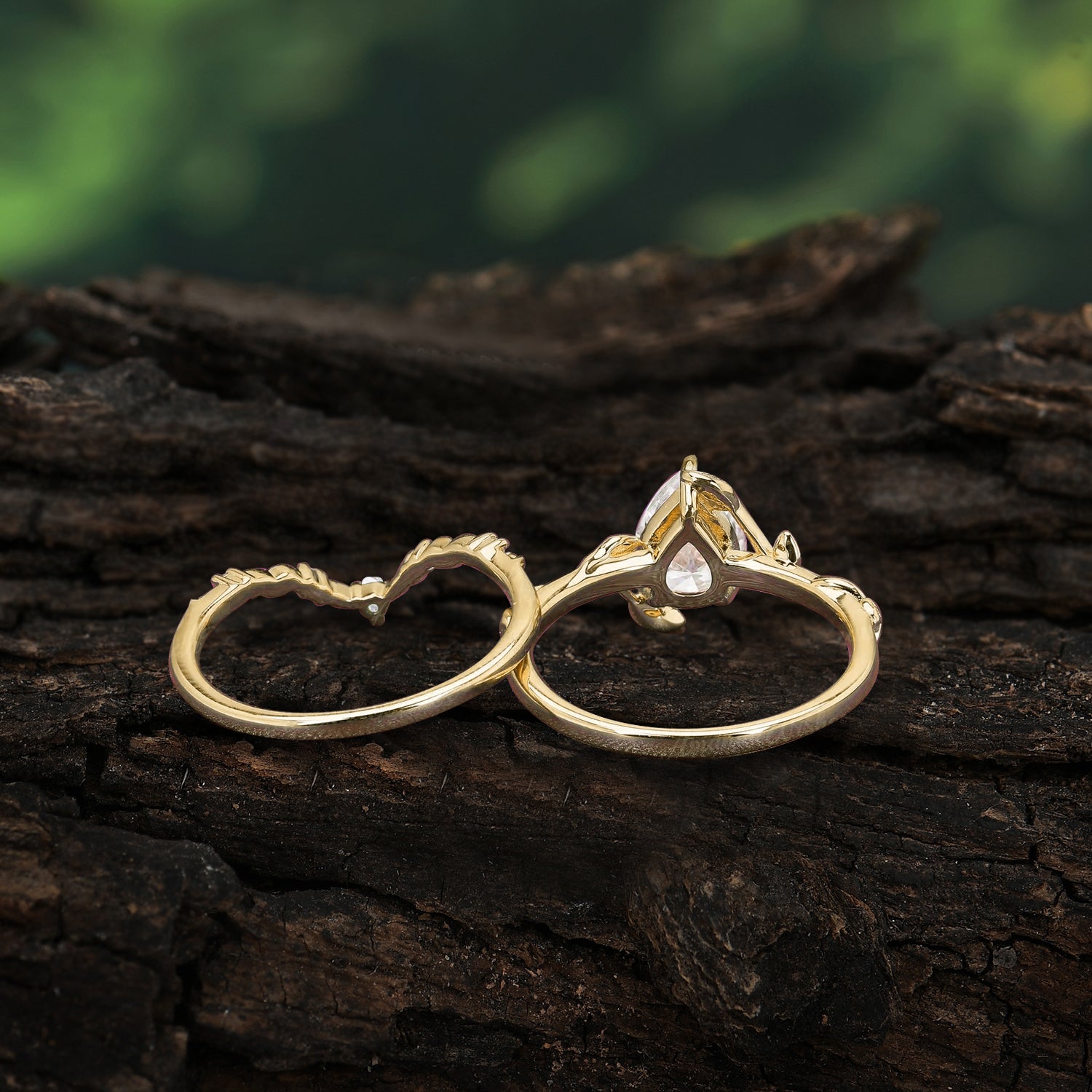 3 Prong Delicate Twisted Vine Wrapped Prong Pear Cut Moissanite Stackable Rings