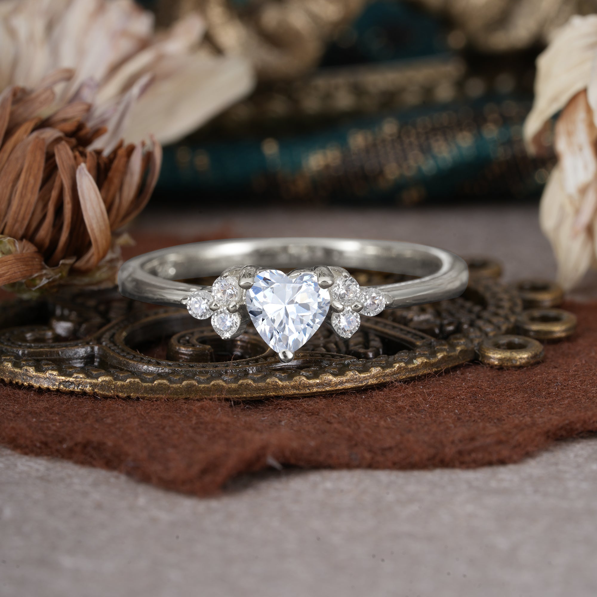 3 Prong Heart Cut Classic Lab Diamond Engagement Ring Side with 3-stone