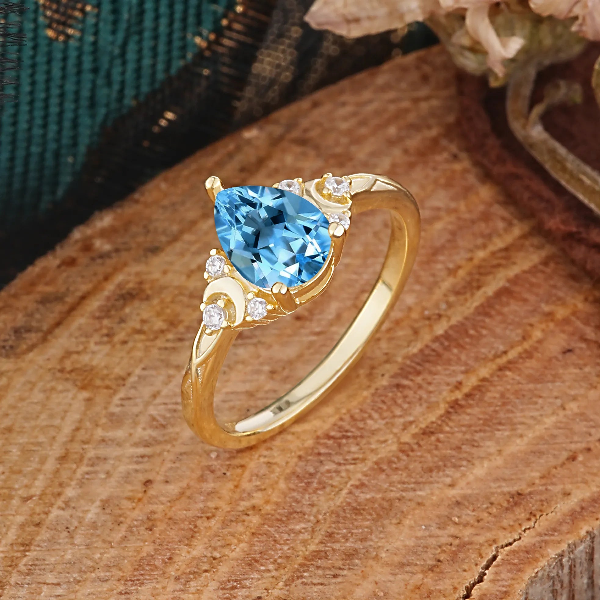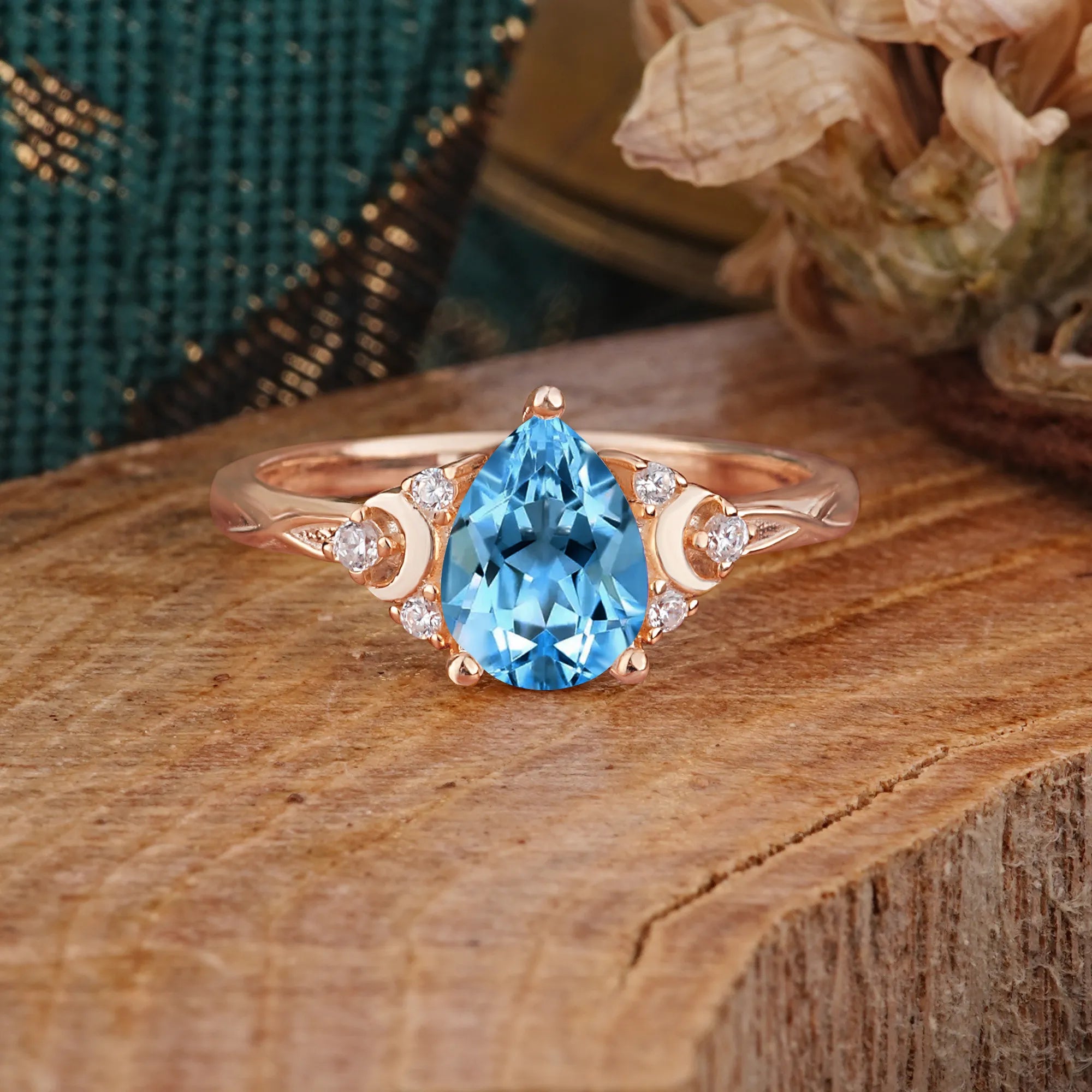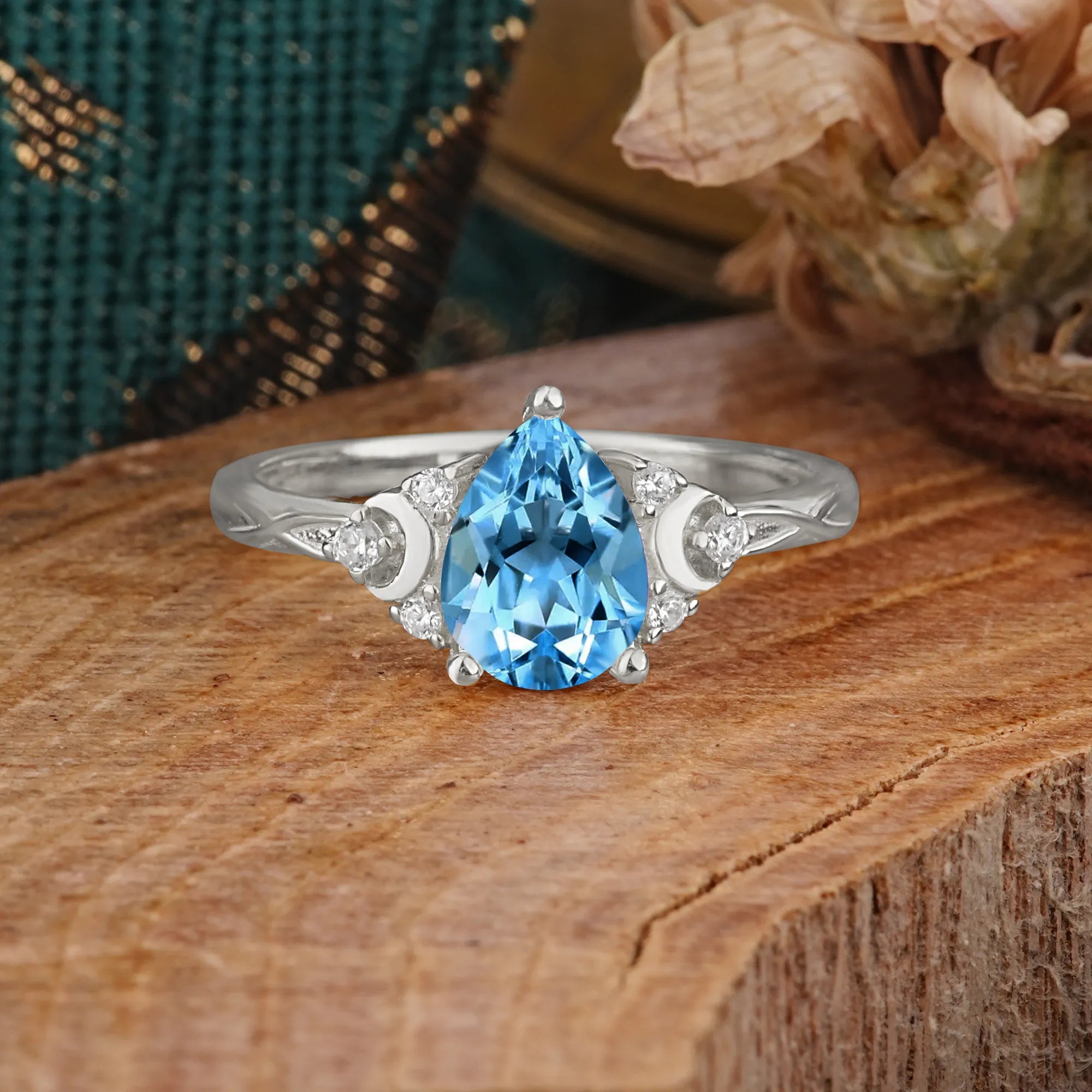 3 Prong Unique Pear Cut Aquamarine Cluster Engagement Ring