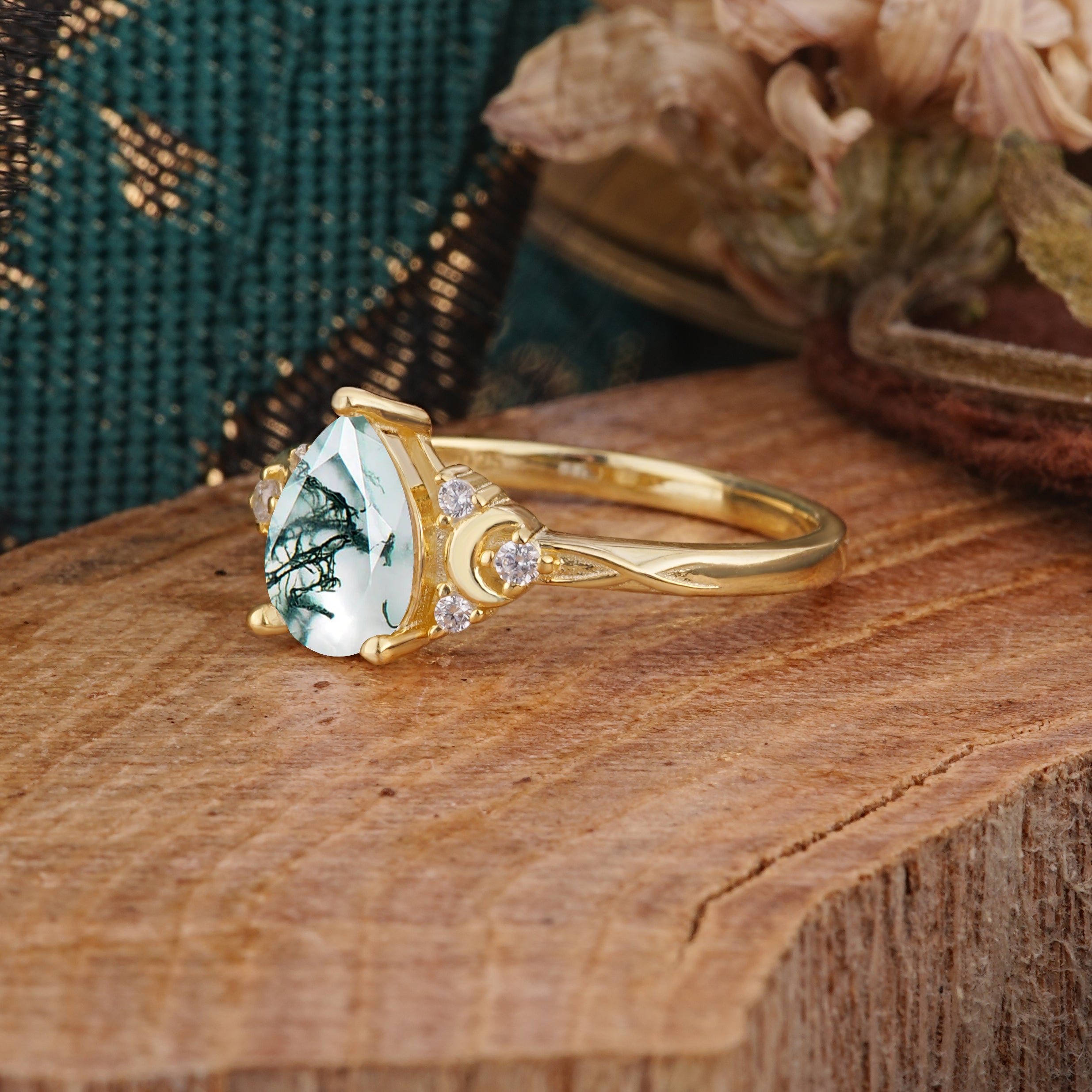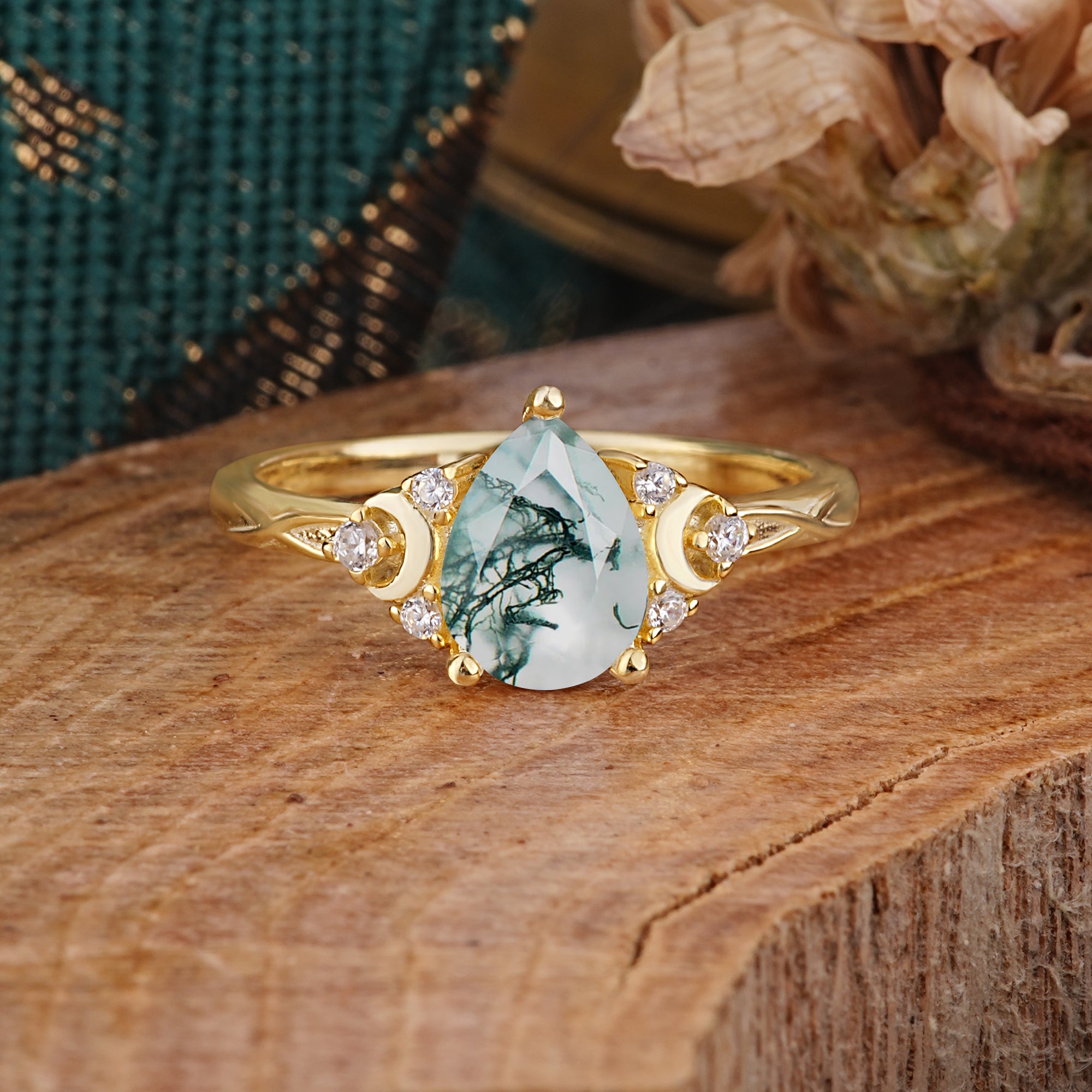 | Stone Material: Moss Agate | Stone Material: Moissanite |