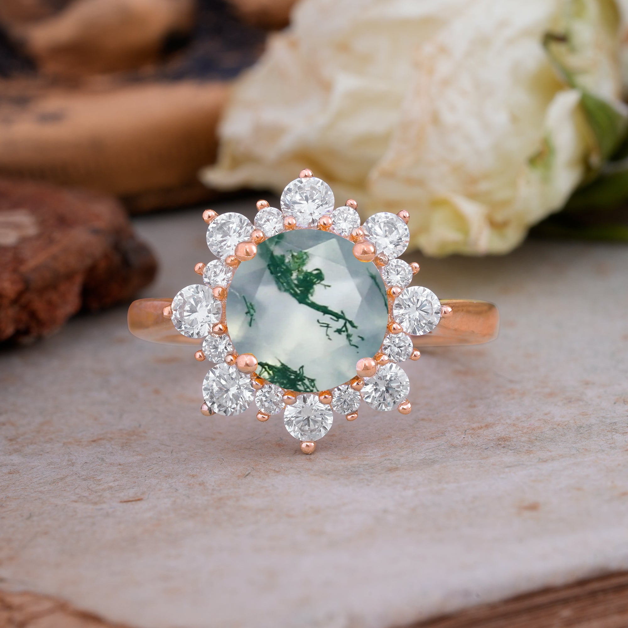 | Stone Material: Moss Agate | Stone Material: Moissanite |