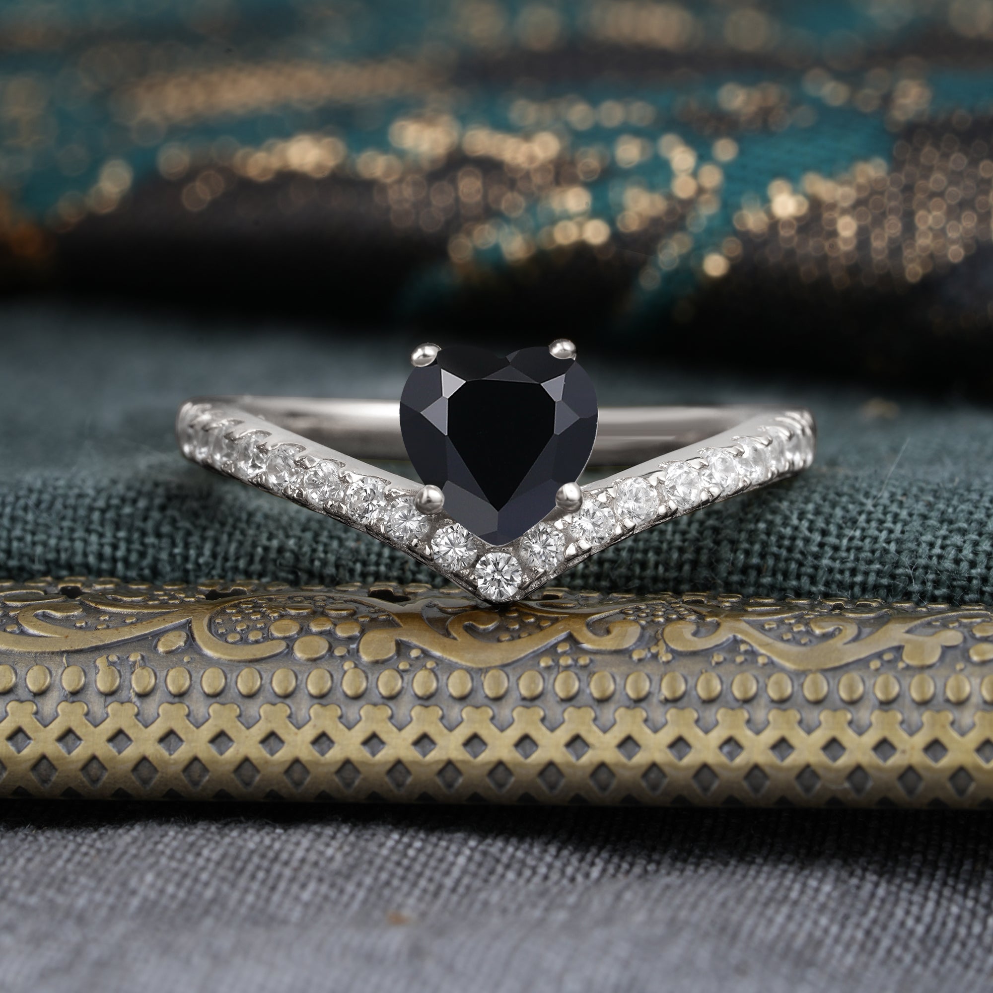 4-Prong Heart Shaped Black Onyx Engagaement Ring Classic Wedding Ring