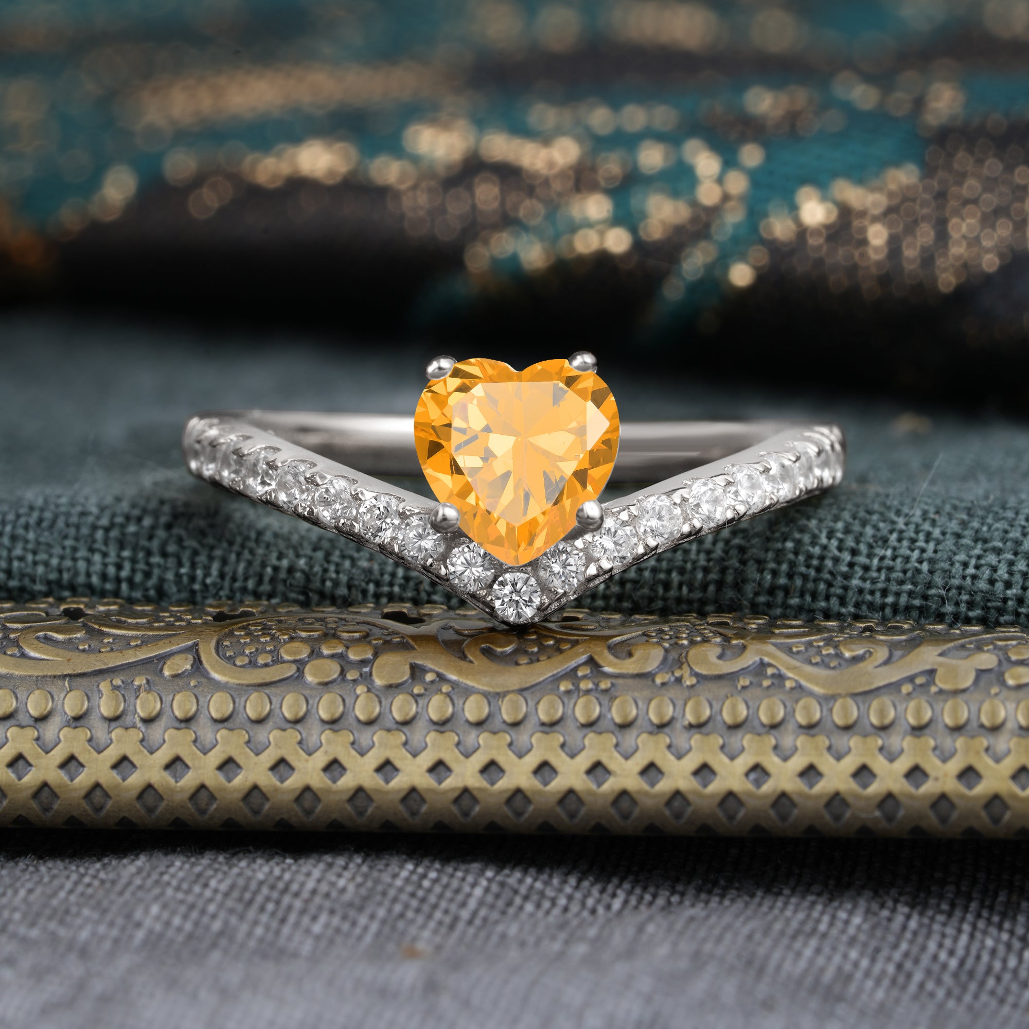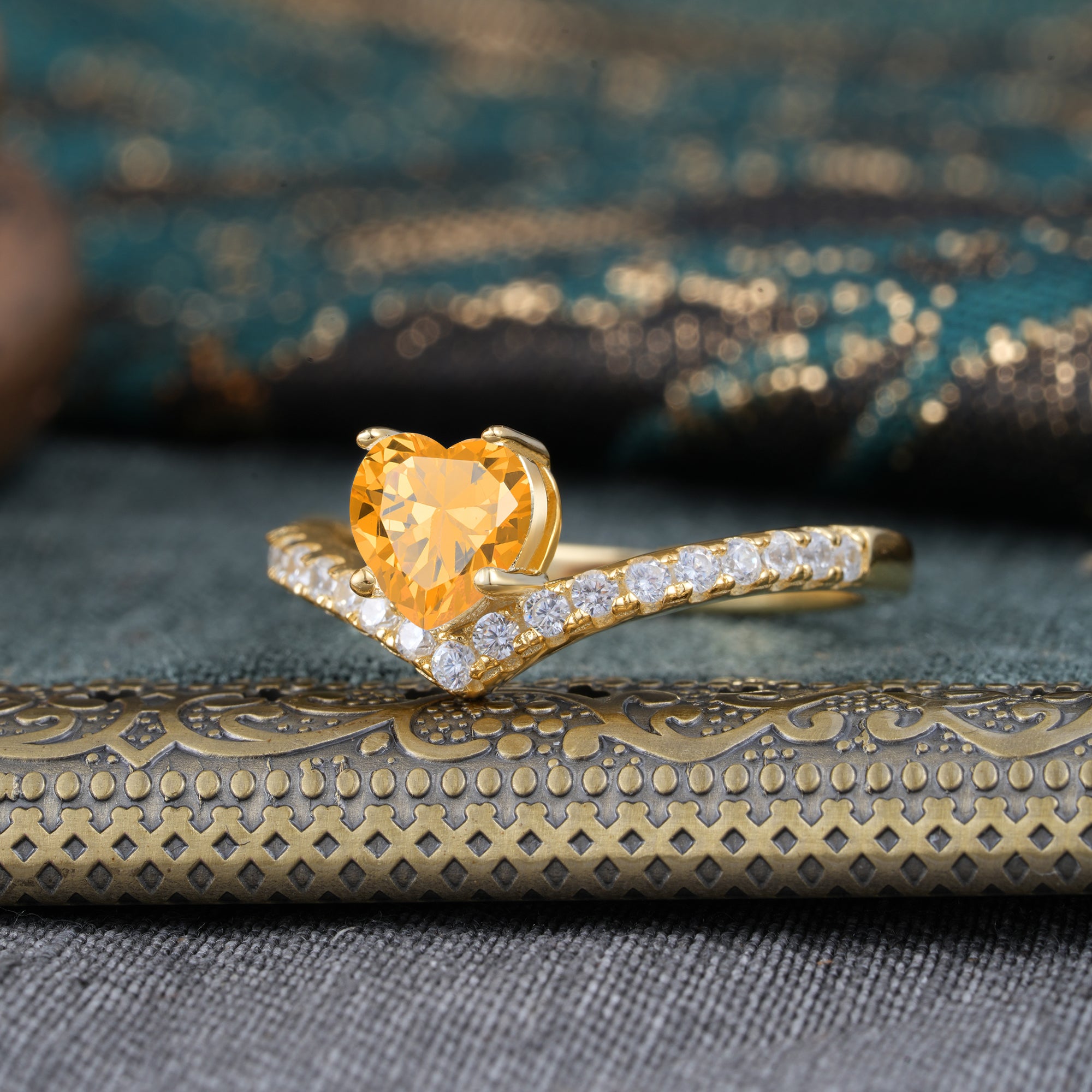 4-Prong Heart Shaped Citrine Engagaement Ring Classic Wedding Ring