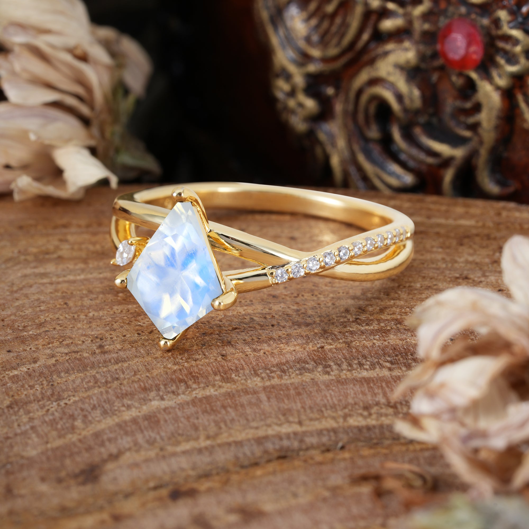 | Stone Material: Moonstone | Stone Material: Moissanite |
