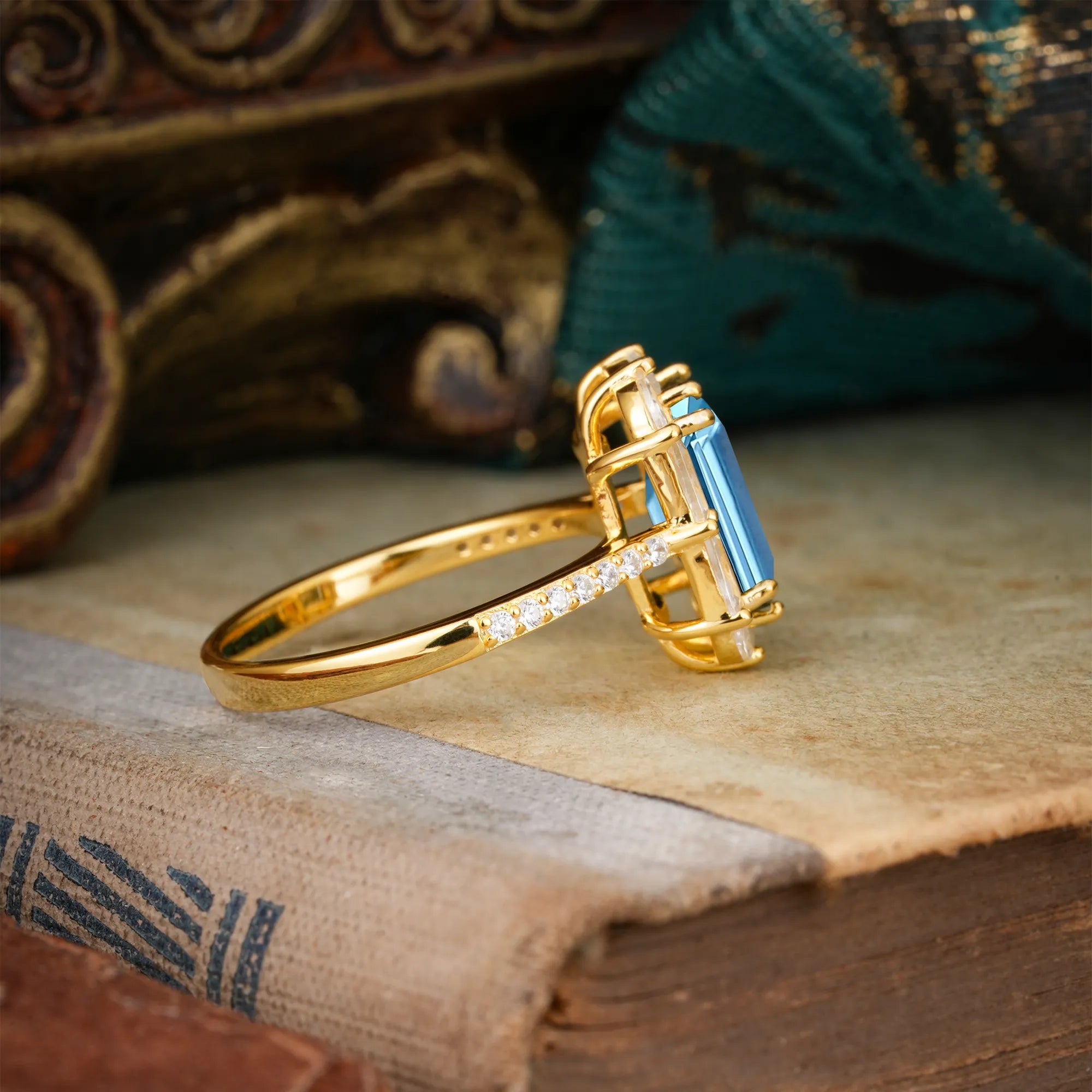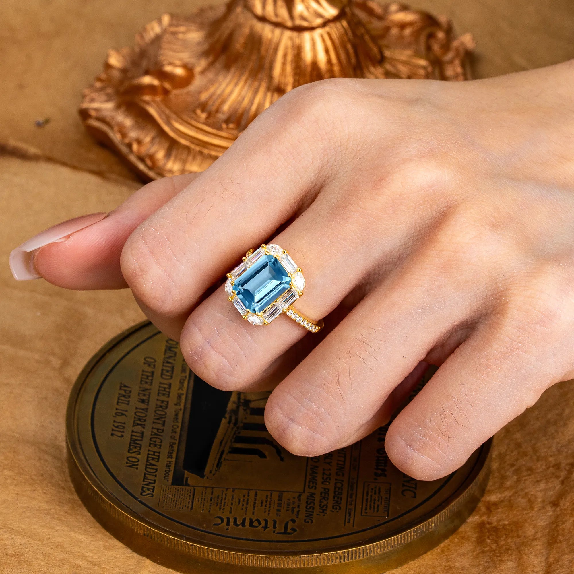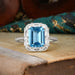 4CT Emerald Cut 8 Prong Aquamarine Engagement Ring Pave Halo Bridal Ring