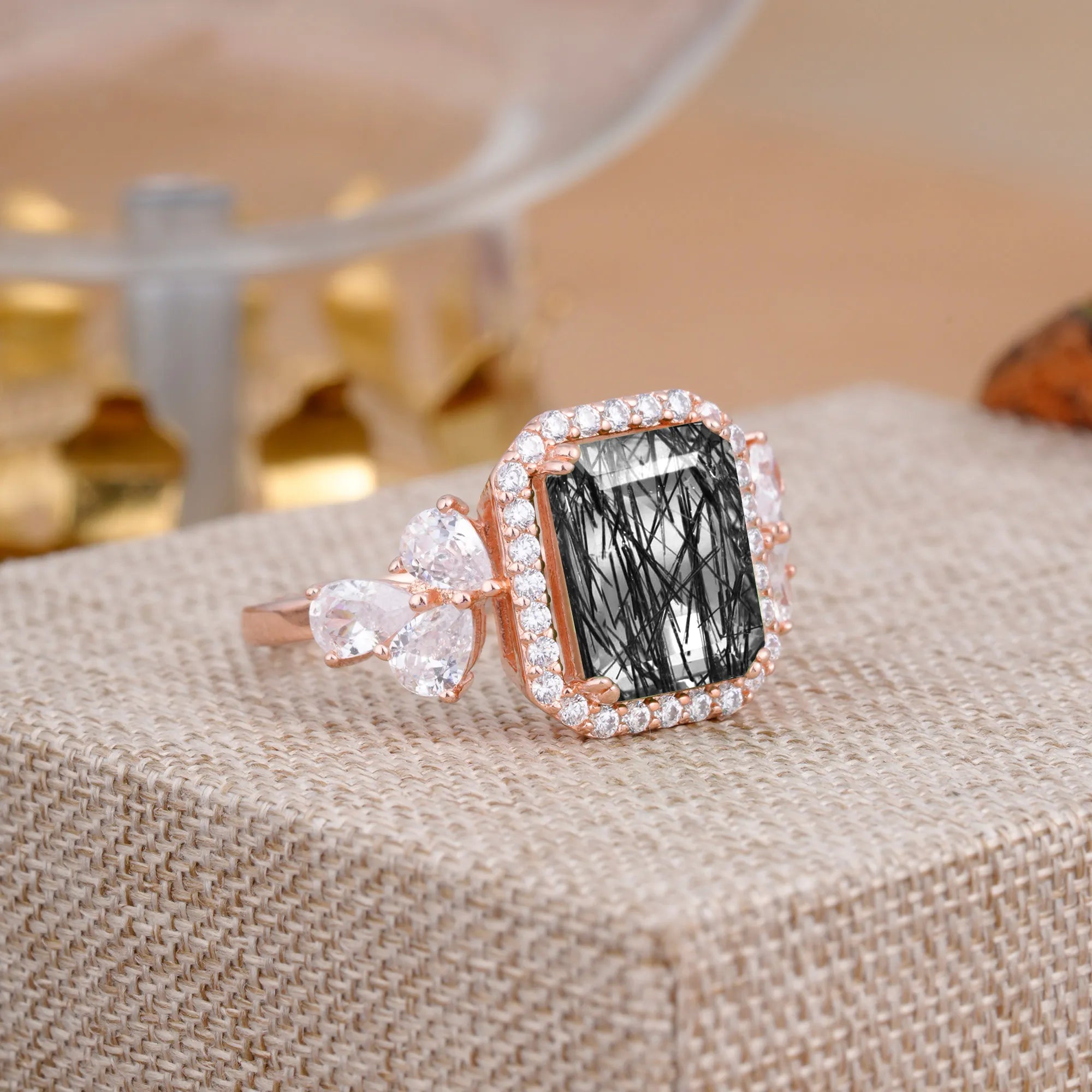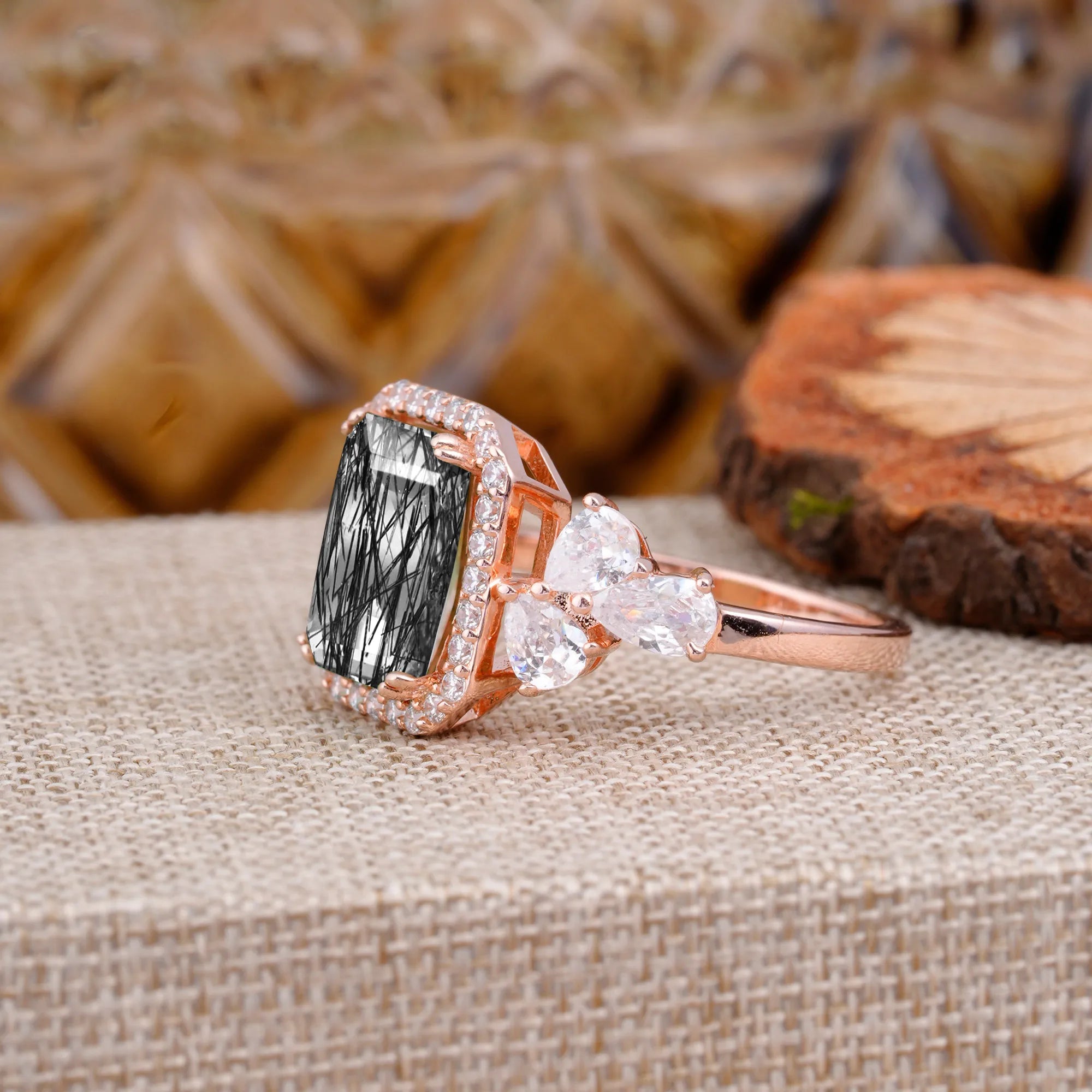 | Stone Material: Black Rutilated Quartz | Stone Material: Moissanite |