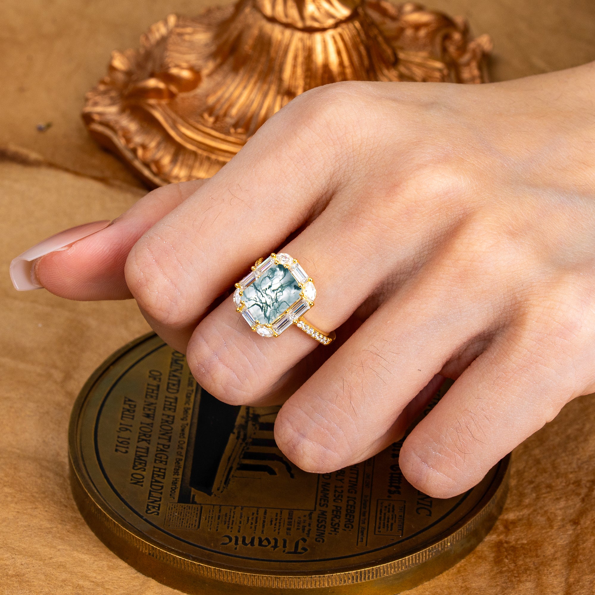 | Stone Material: Moss Agate | Stone Material: Moissanite |