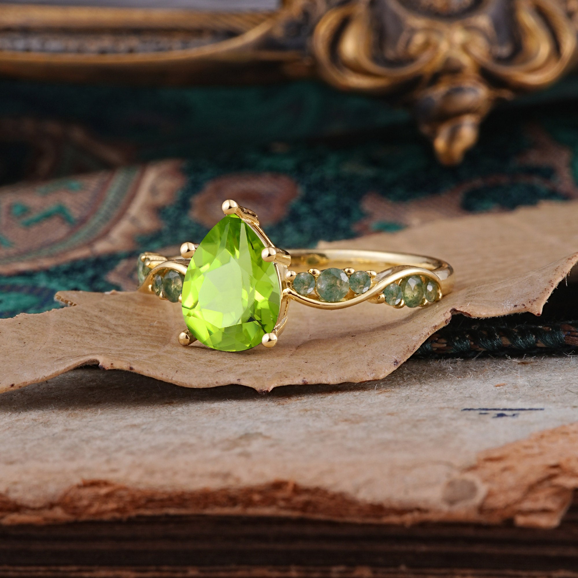 5 Prong Luxury Pear-Cut Peridot Engagement Ring
