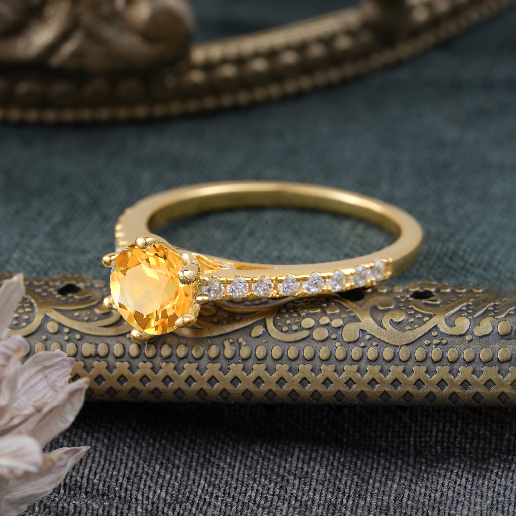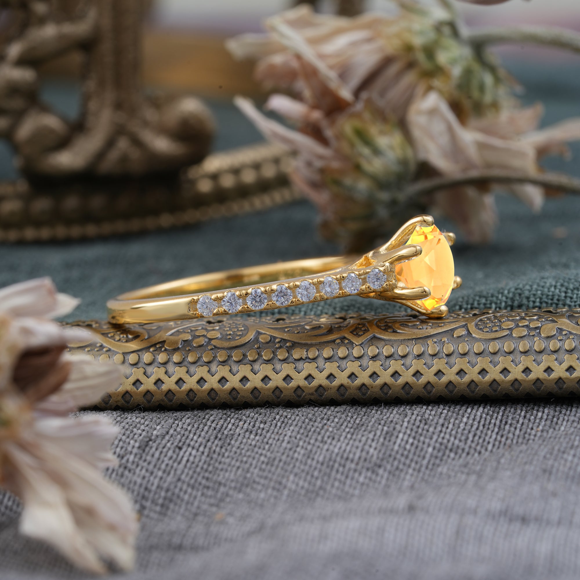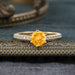 6-Prong Classic Round Cut Citrine Engagement Ring Pave Bridal Ring