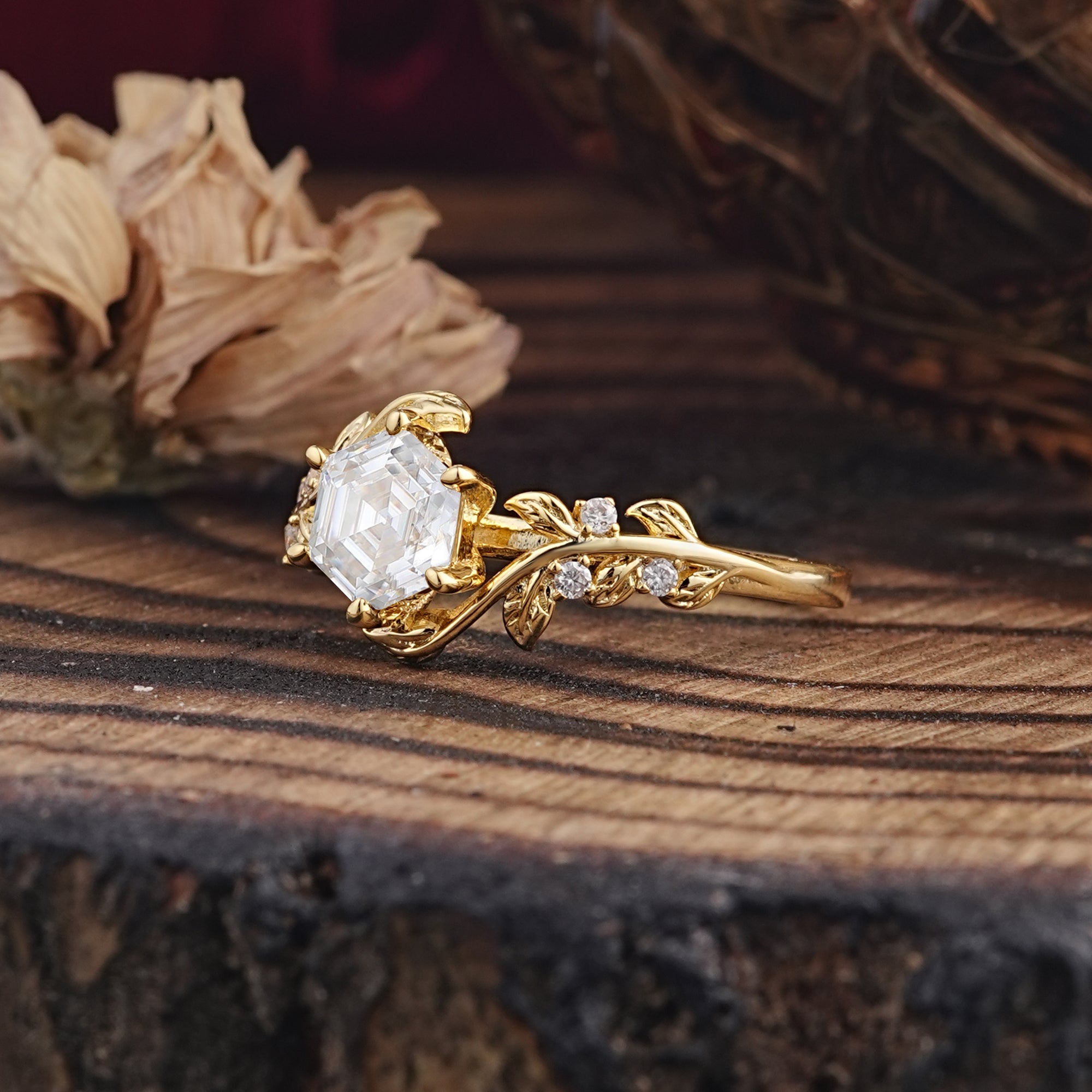 💖Dazzling Hex-Cut Moissanite in Blooming Vine Setting