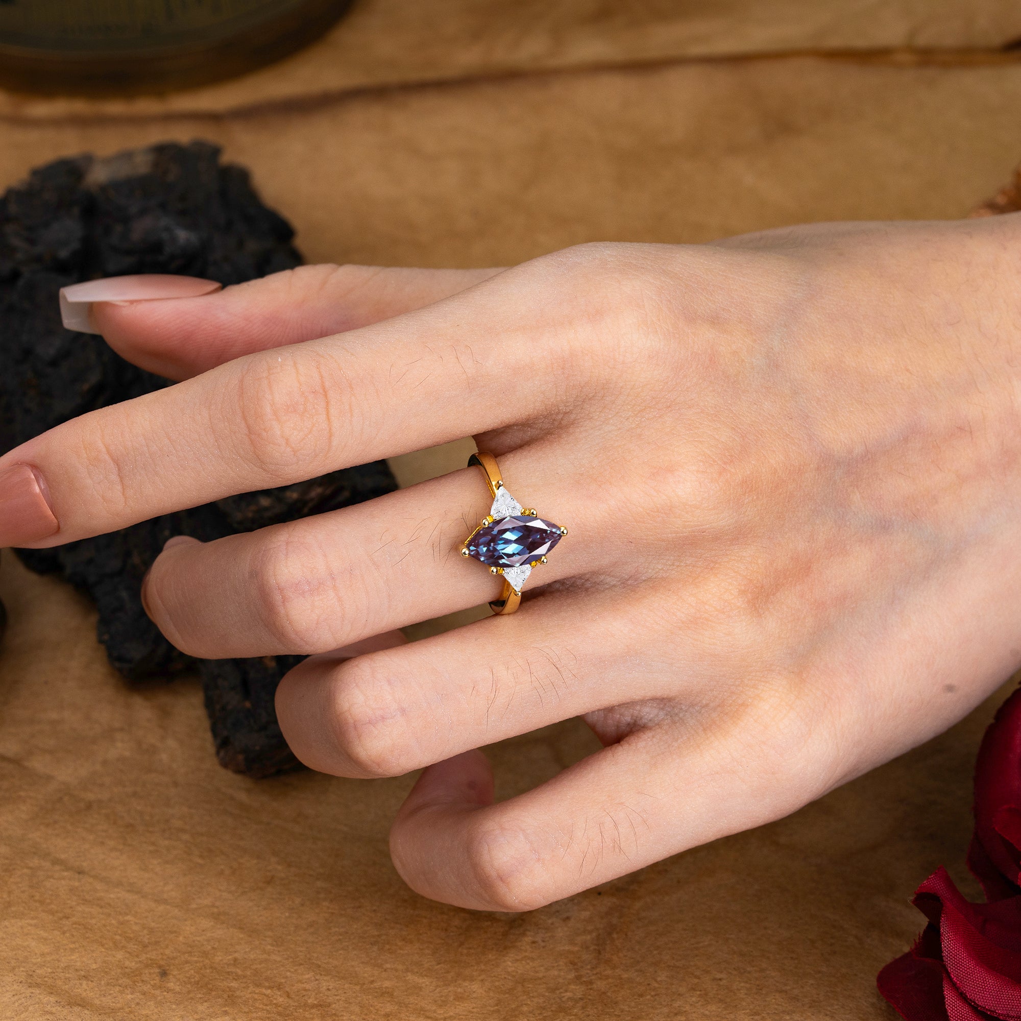 ✨ Marquise Cut Three Stone Alexandrite Engagement Ring ✨
