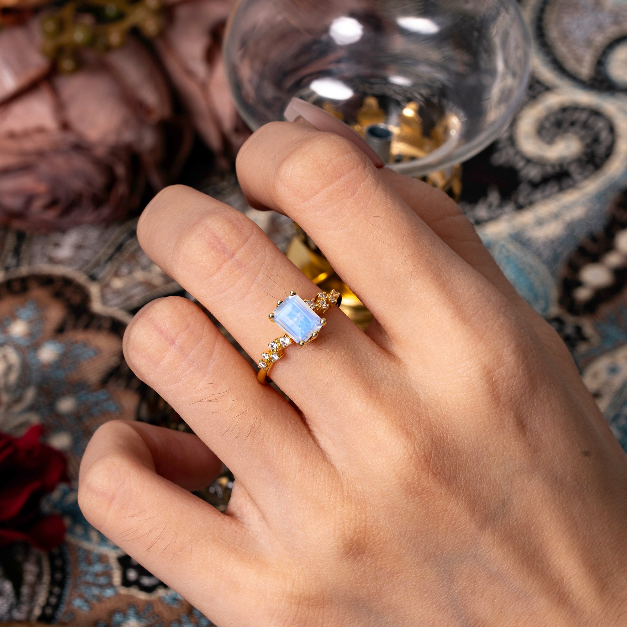 6 Prong Timeless 3 Carat Emerald Cut Moonstone Engagement Ring