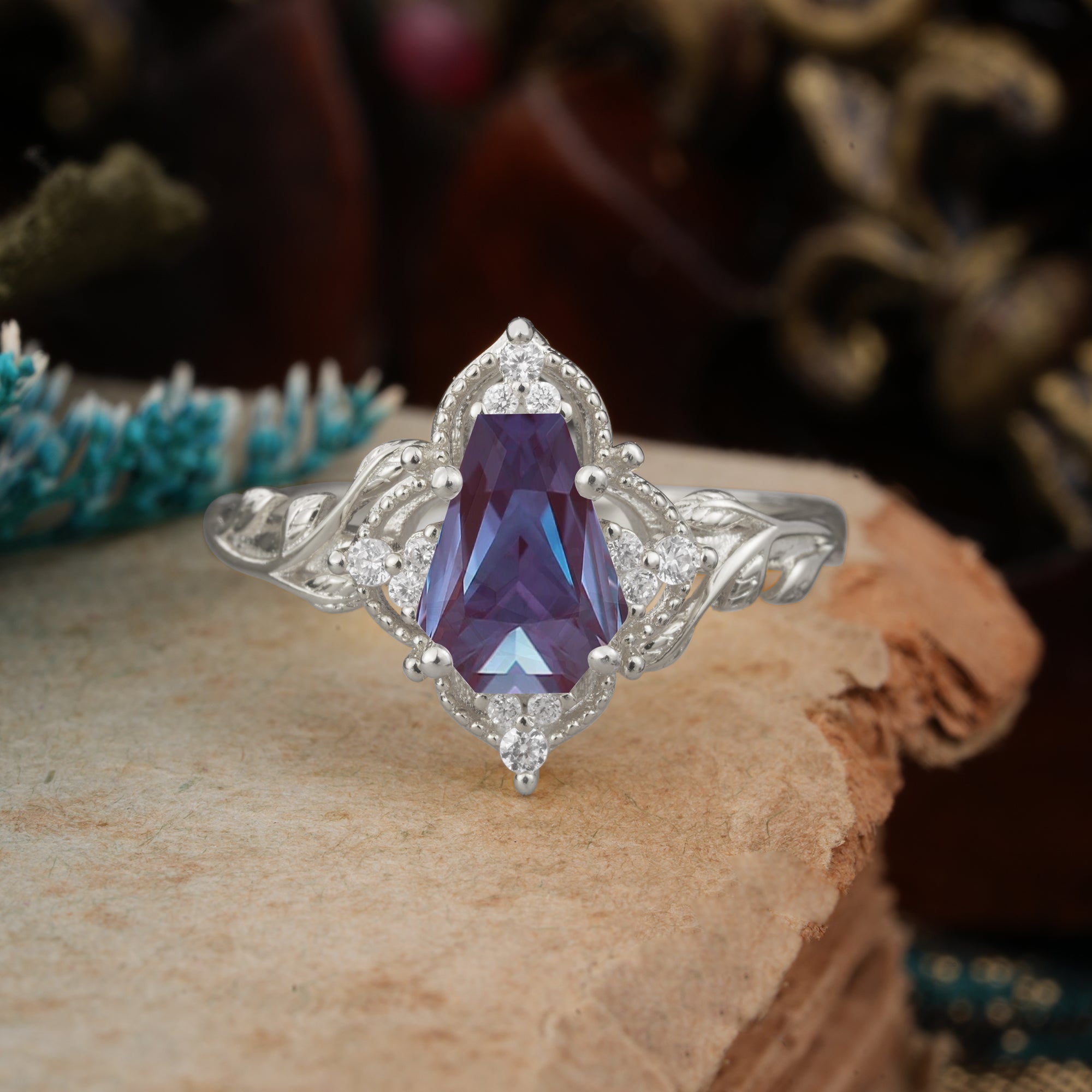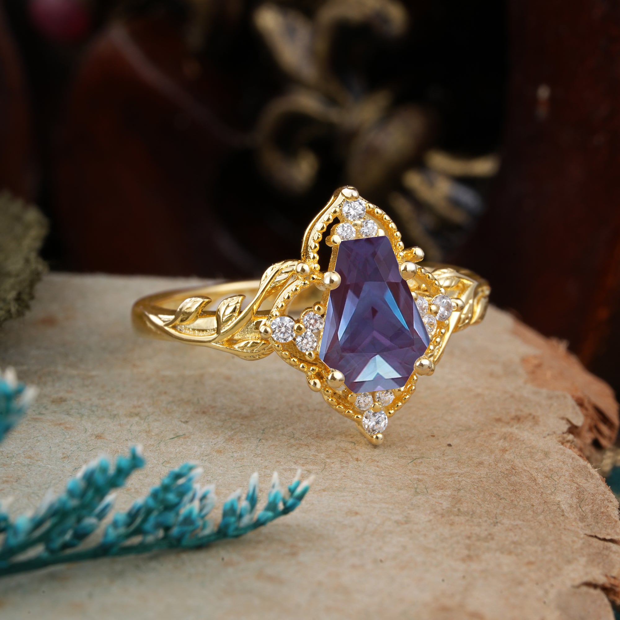 Antique Nature Inspired Coffin-Cut Alexandrite Engagement Ring