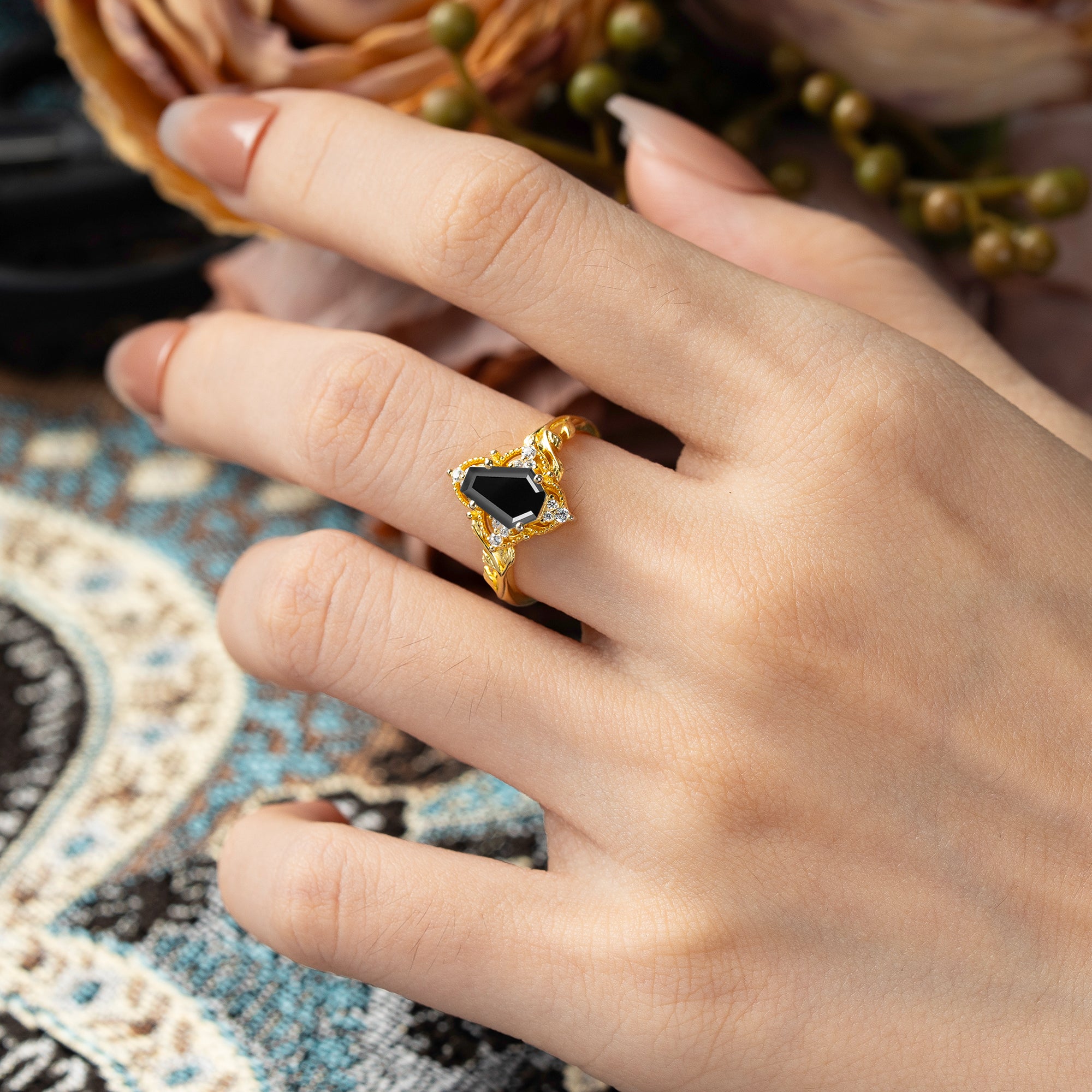 Antique Nature Inspired Coffin-Cut Black Onyx Engagement Ring