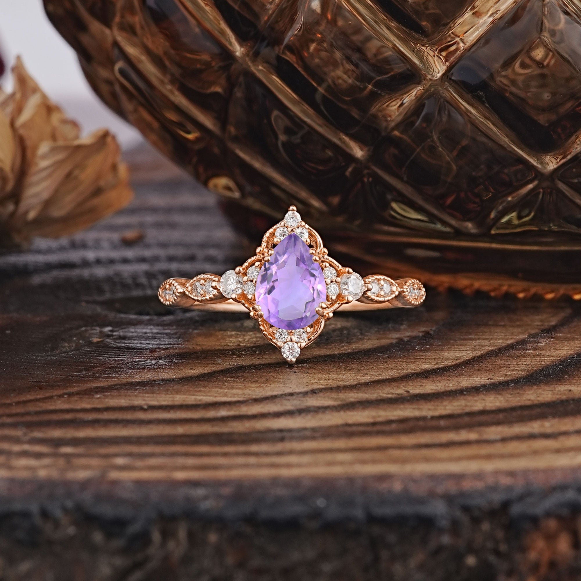 Antique Pear-Cut Natural Amethyst Engagement Ring
