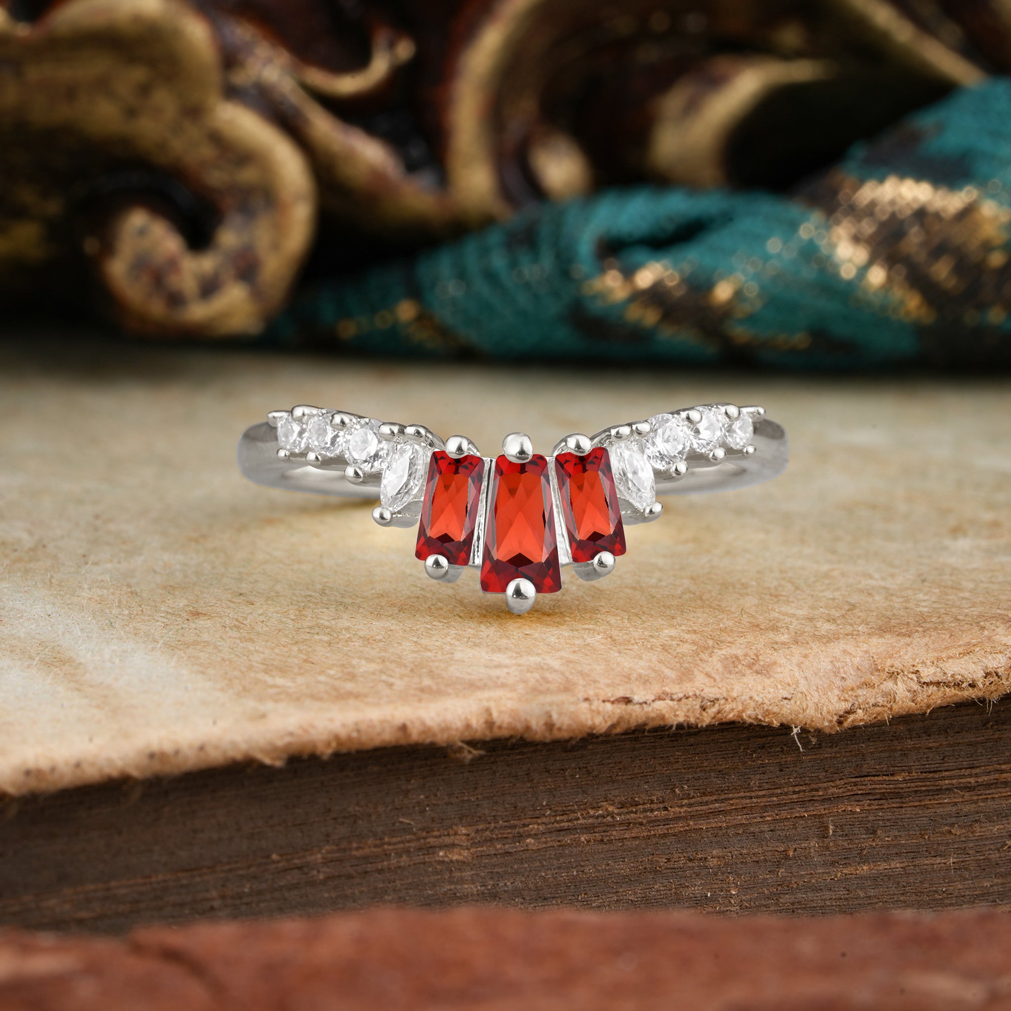 Baguette Cut Garnet Half Eternity Curved Wedding Band Stacking Ring