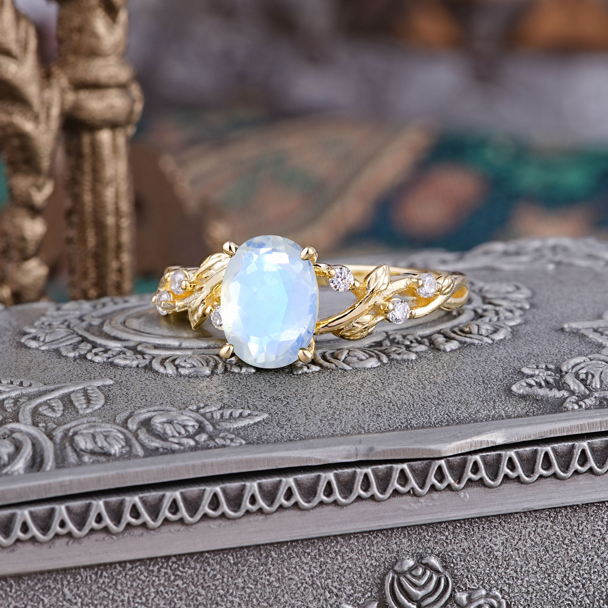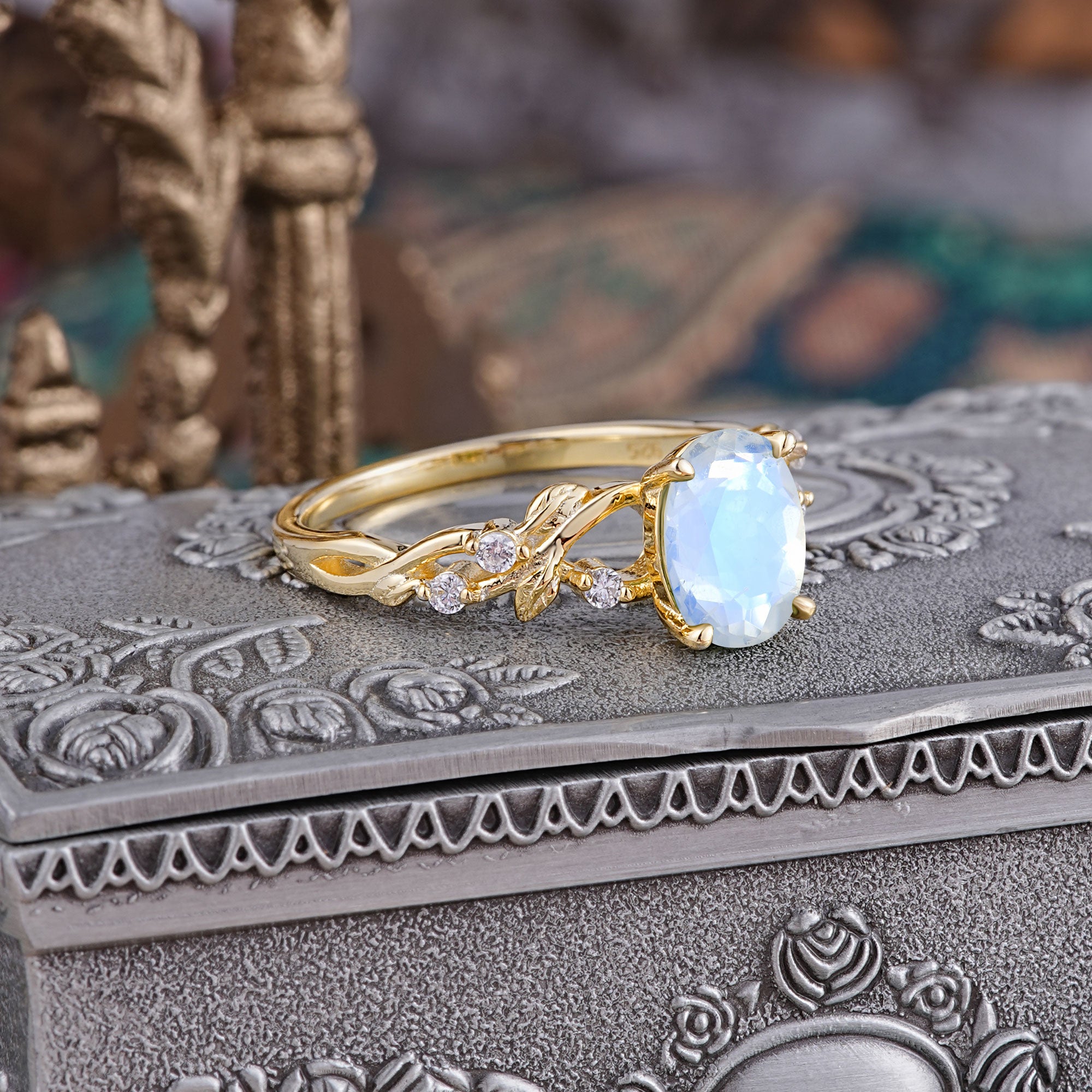 Boho 4 Prong Oval Moonstone Wedding Ring