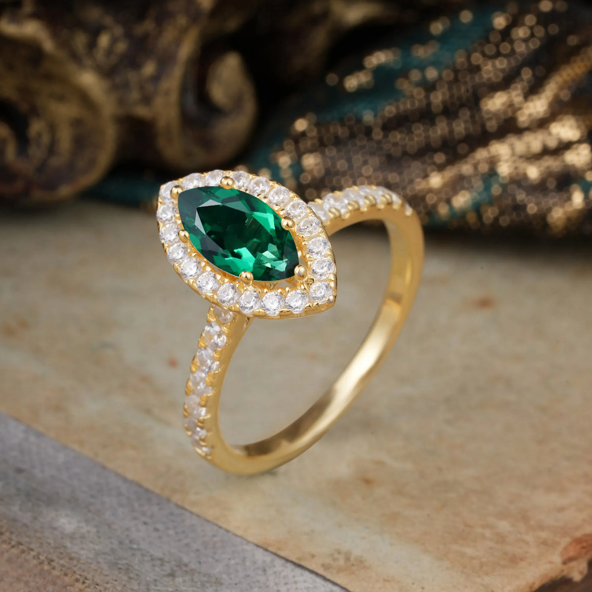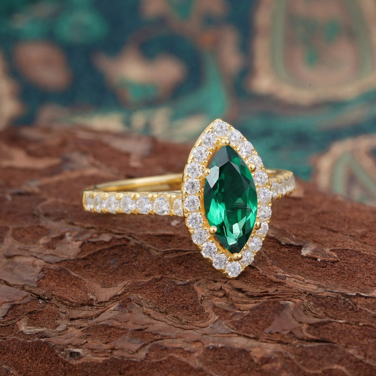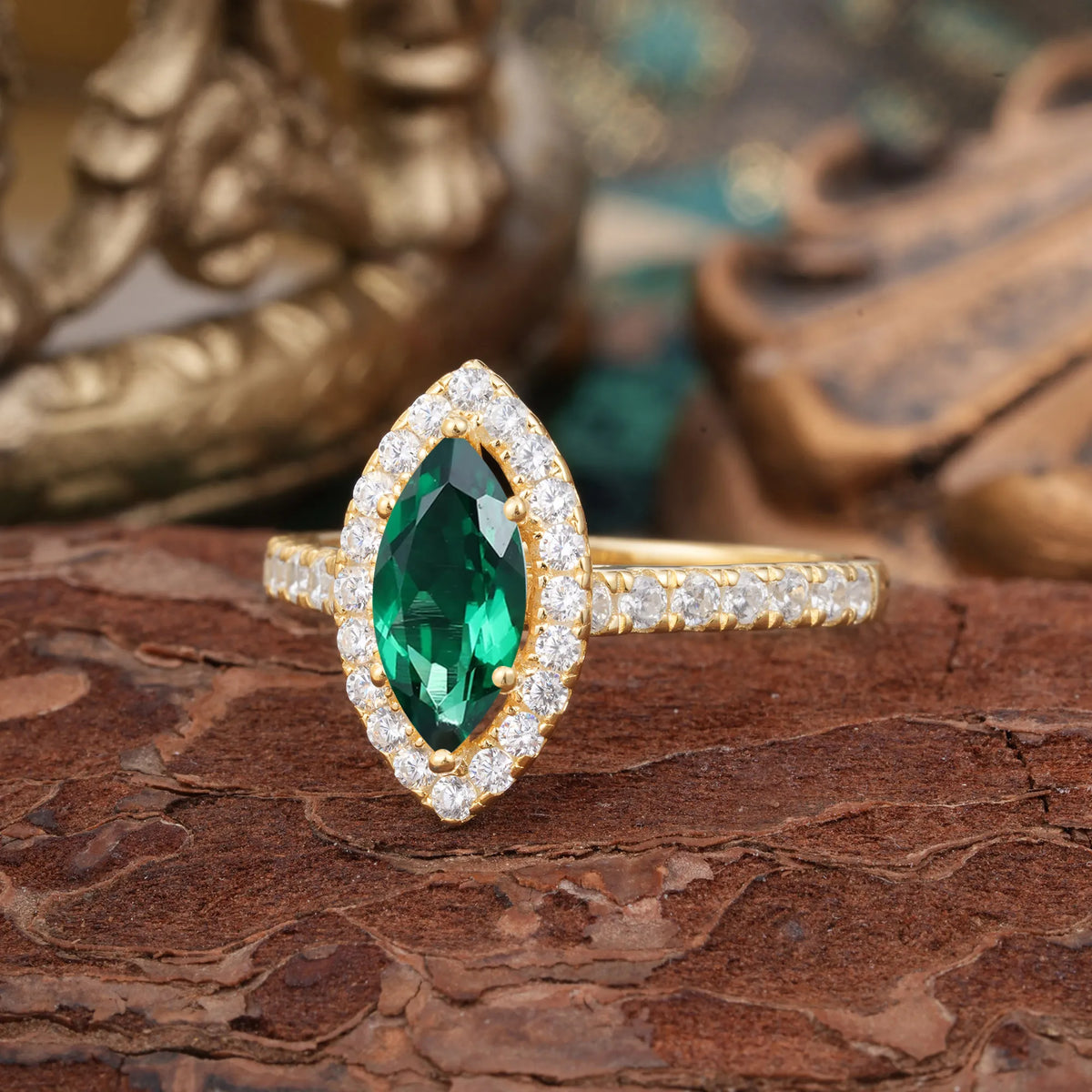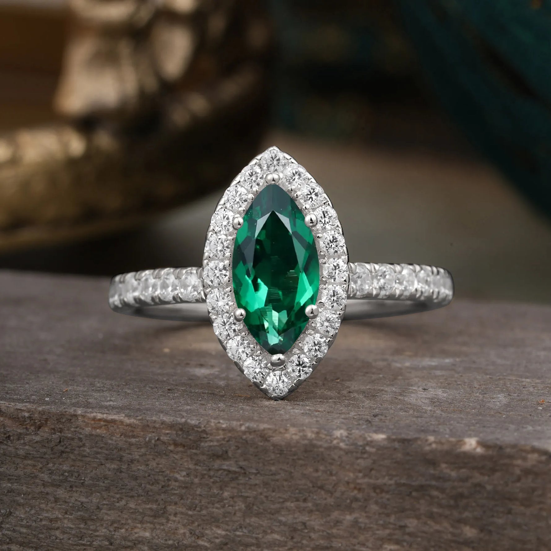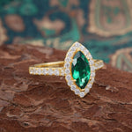 Classic Marquise Cut Emerald Halo Engagement Ring
