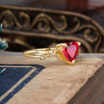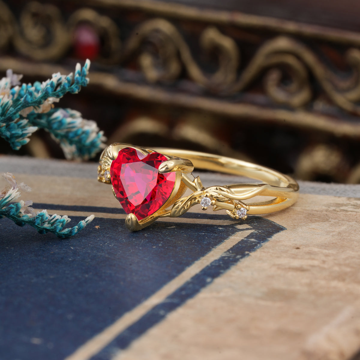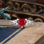 Classic Nature-Inspired 3-Prong Heart-Shaped Ruby Engagement Ring
