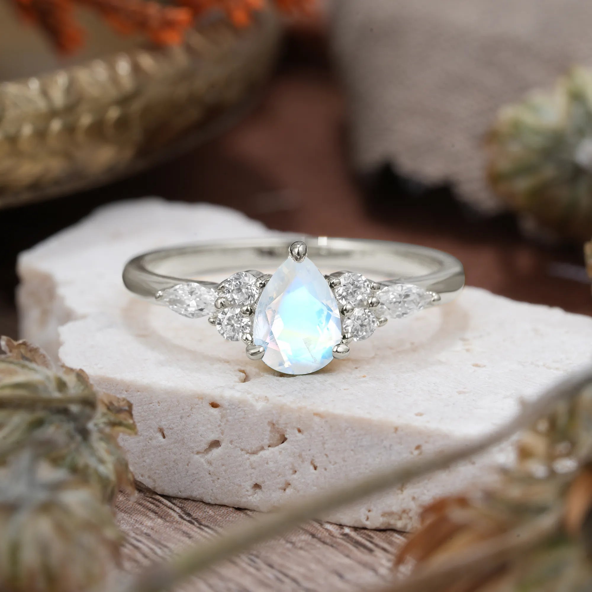 | Stone Material: Moonstone | Stone Material: Moissanite |