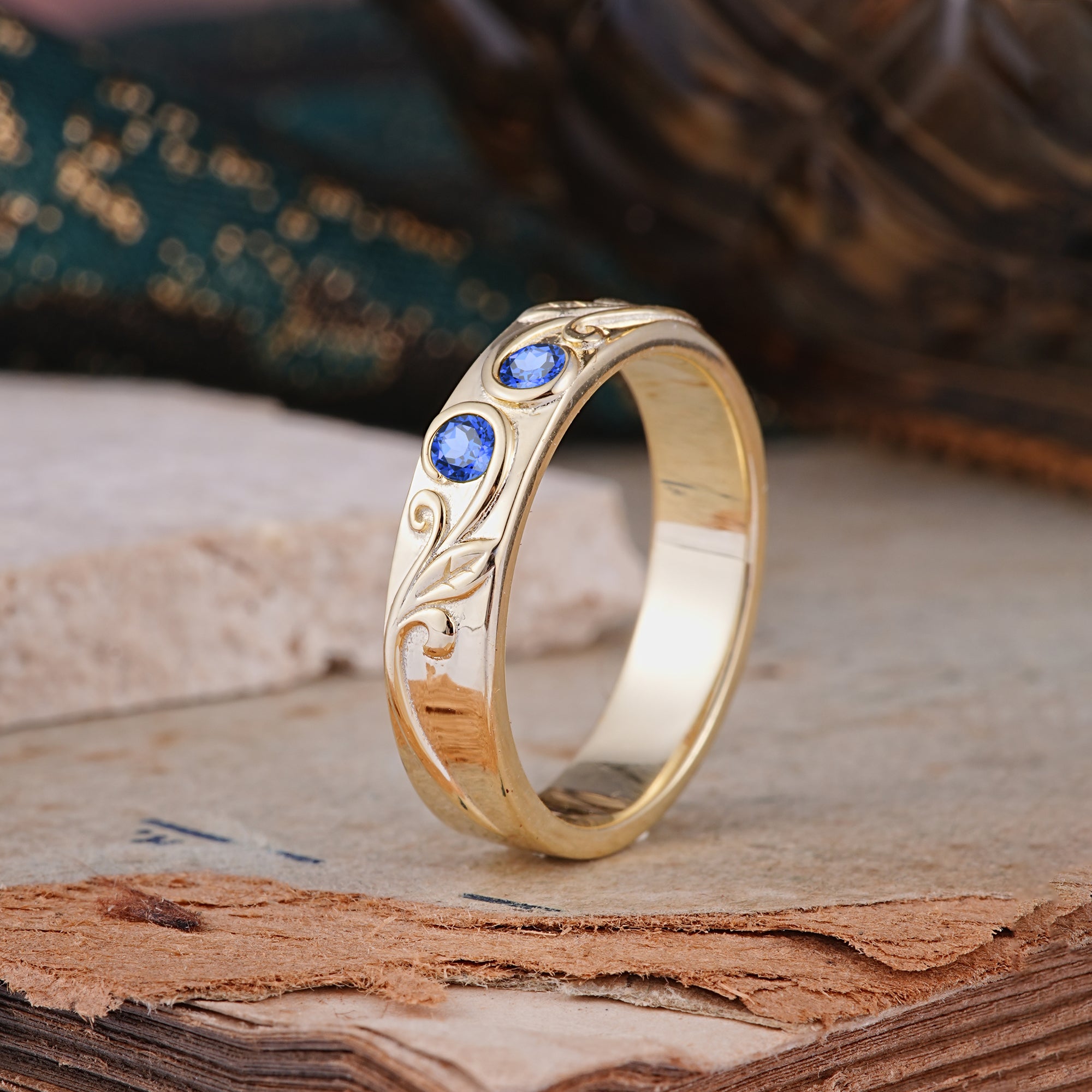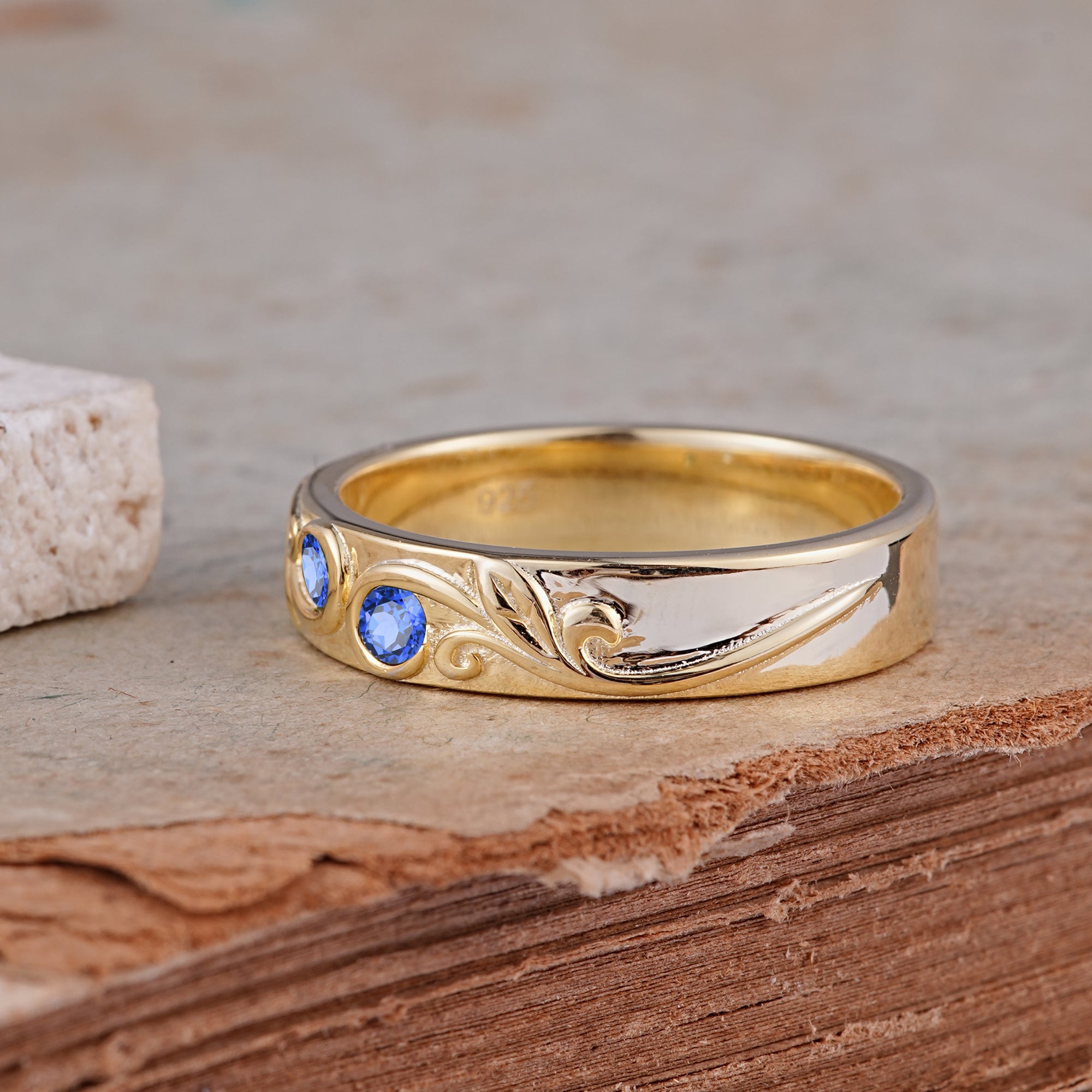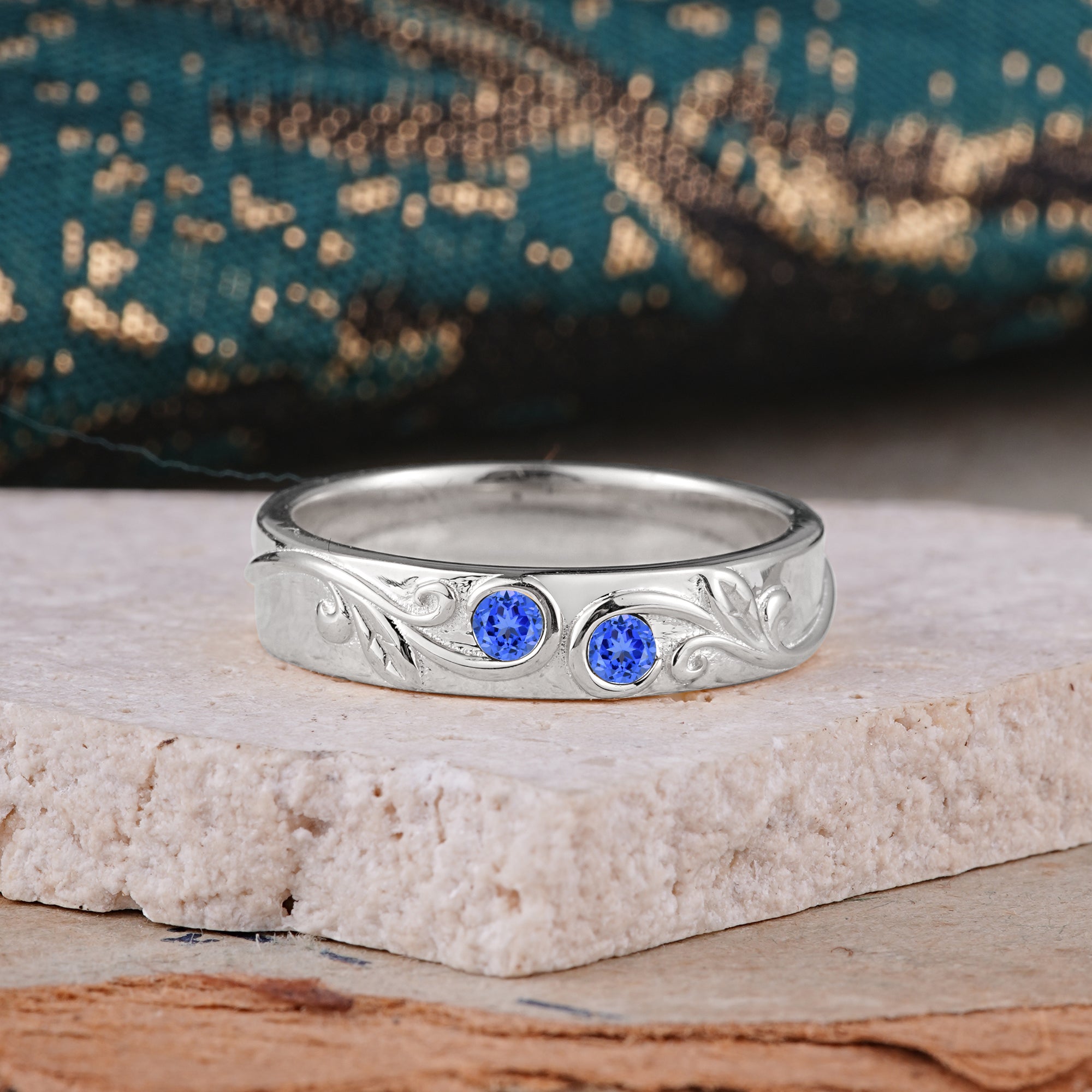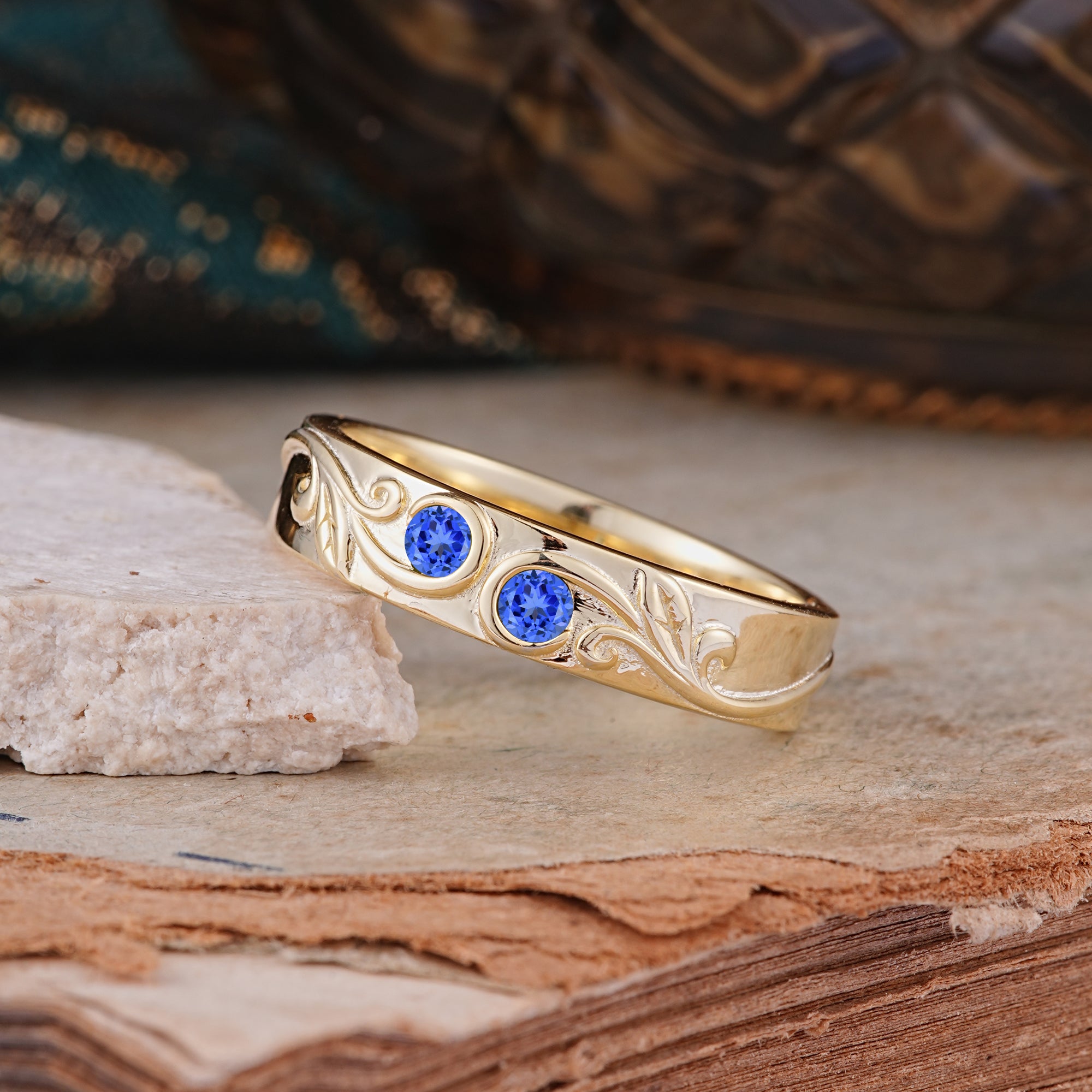 Classic Style Bezel Set Round - Cut Sapphire Men's Ring