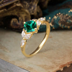 Cushion Cut 1 Carat Emerald Anniversary Ring Classic Side Stone Ring