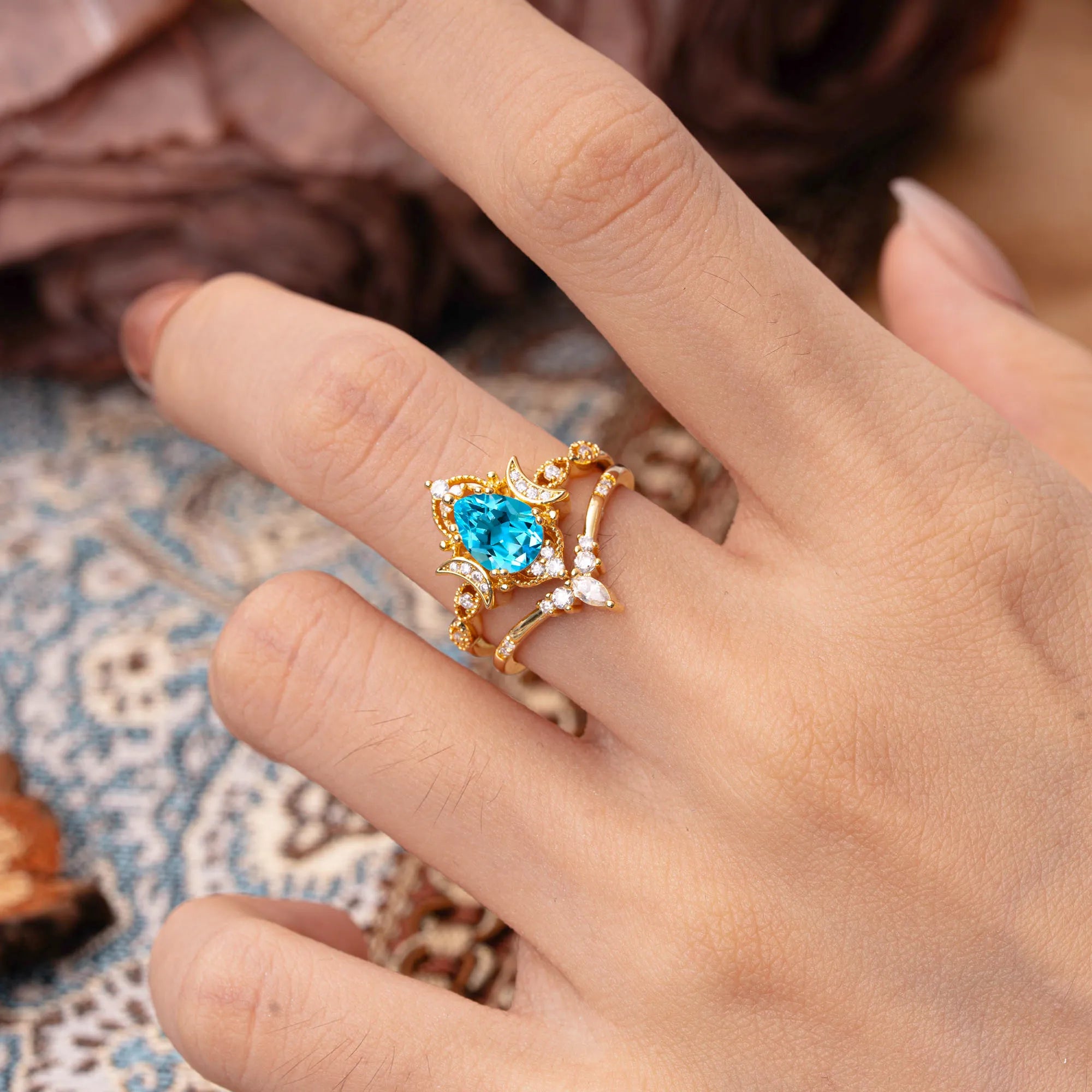 | Stone Material: Aquamarine | Stone Material: Moissanite |