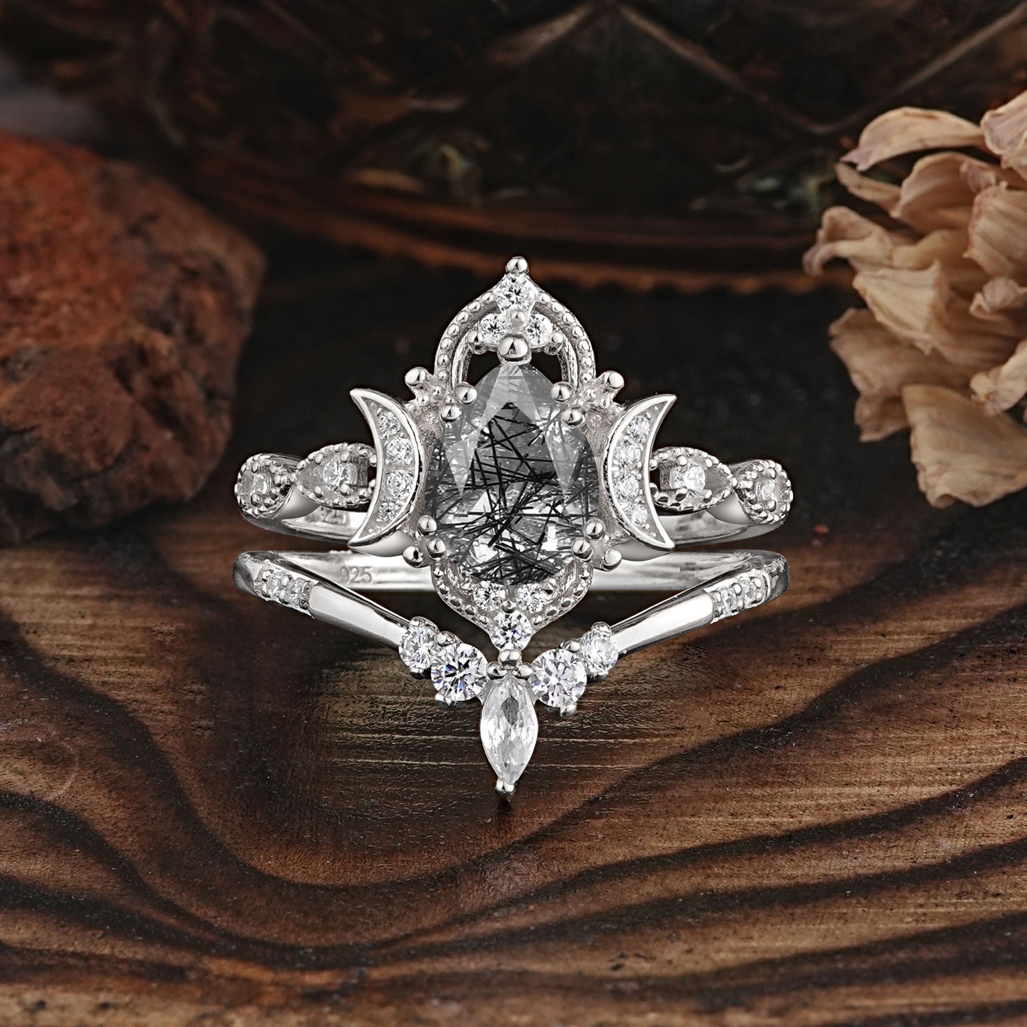 | Stone Material: Black Rutilated Quartz | Stone Material: Moissanite |