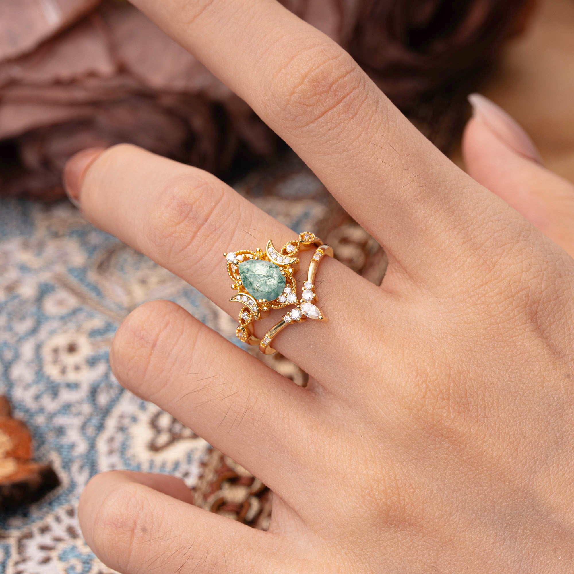 | Stone Material: Moss Agate | Stone Material: Moissanite |