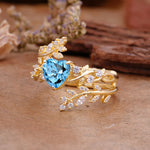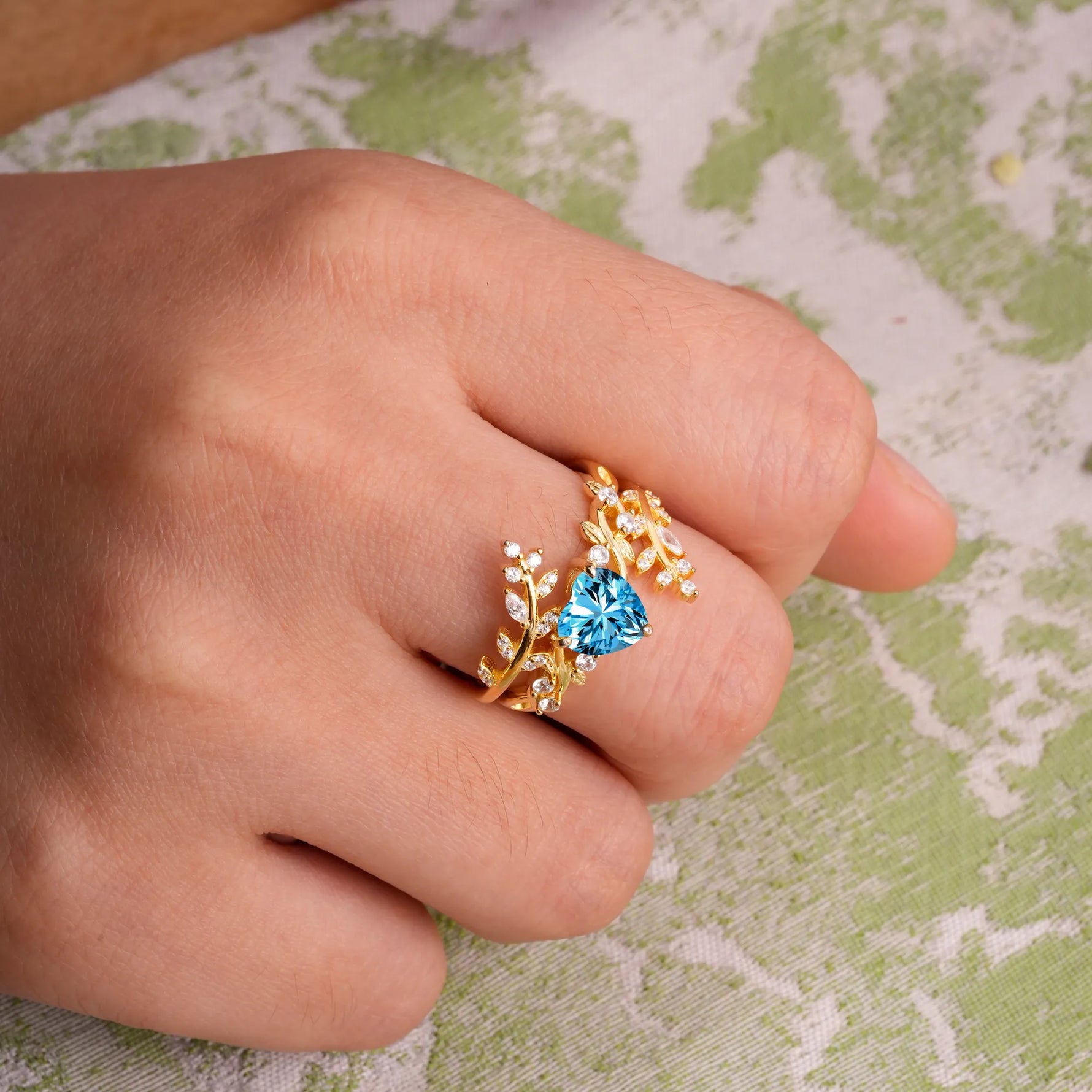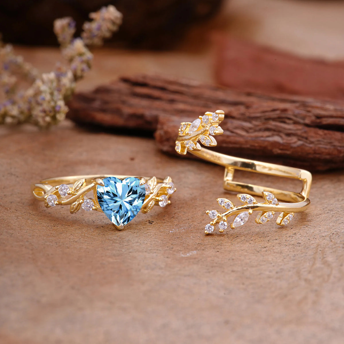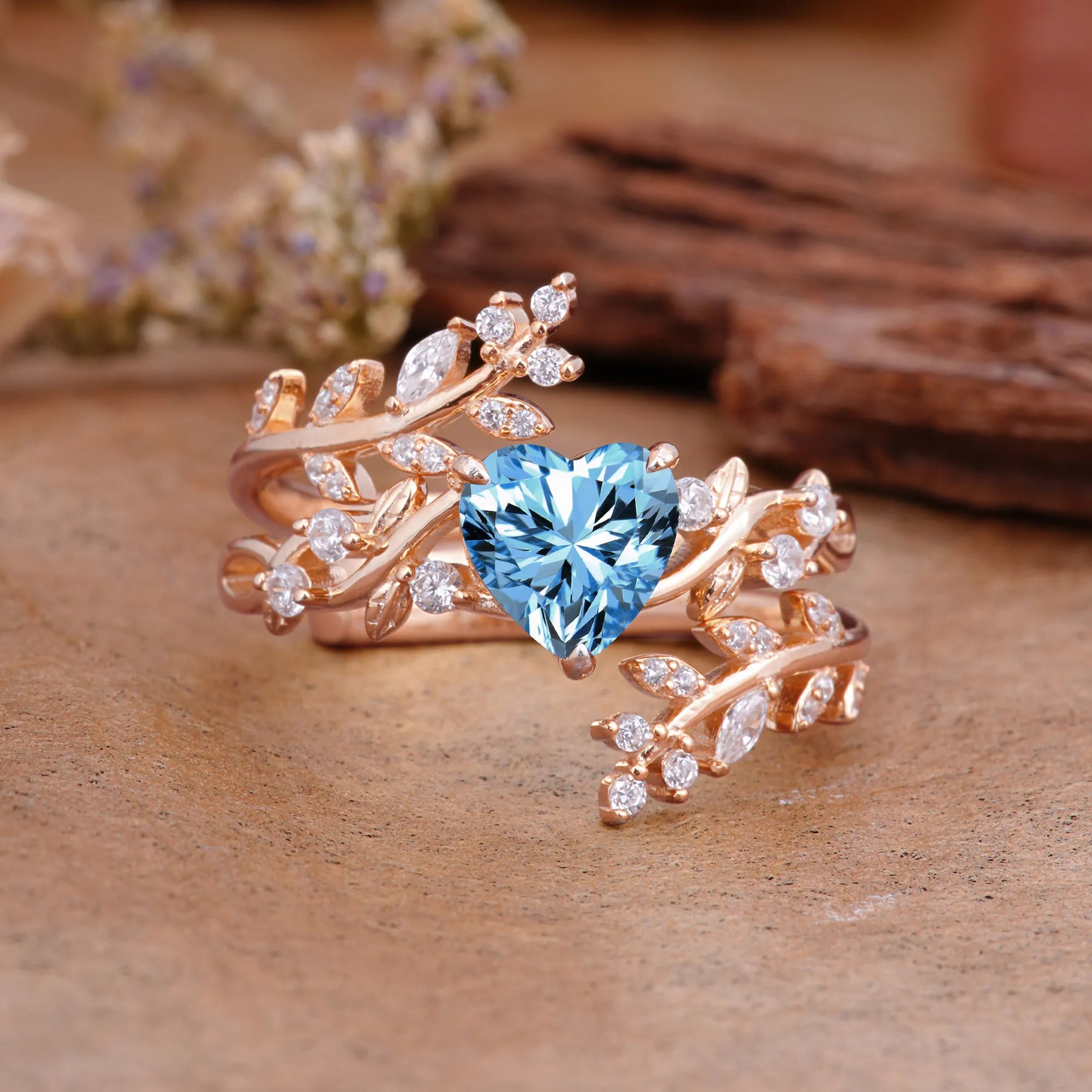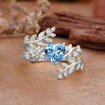 Elegant Heart-Shaped Nature Inspired Aquamarine Ring – Perfect for Engagement Ring Bridal Set